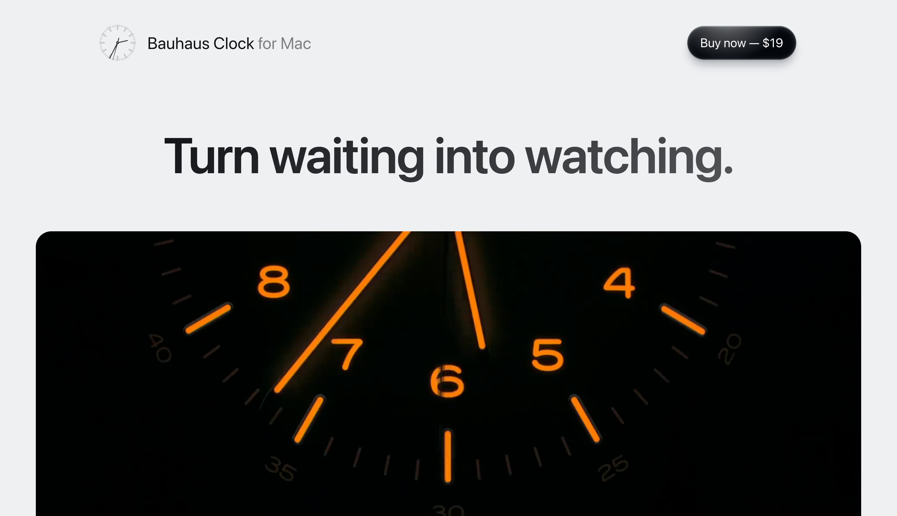 The Bauhaus Clock homepage is designed to drive purchases of its Mac software, with a big “Buy Now — $19” button in the upper right corner, fixed and always within reach as you scroll. It’s designed to convert viewers into purchasers and showcase the utility of a purely digital product. The bold value proposition, “Turn waiting into watching,” is even larger than the product name, set in a clean, sans-serif fonts that echo Apple’s own design aesthetic. In fact, the entire homepage borrows Apple’s visual language, appealing directly to Mac users who will recognize the familiar cues.