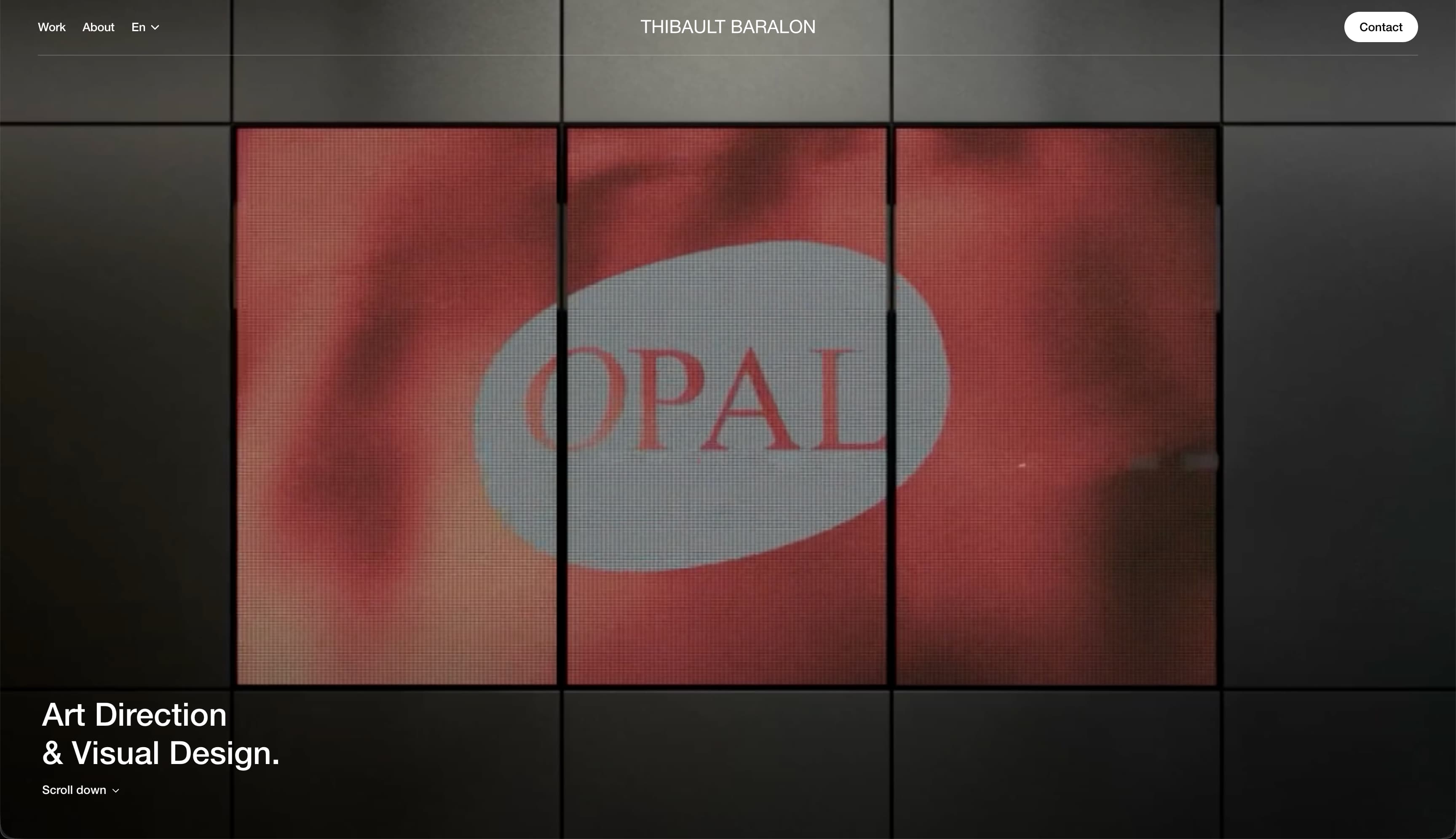 Thibault Baralon’s homepage immediately lets the creative work speak for itself with a huge video on what appears to be a three-panel video display. Large gridded rectangles contain imagery from past work, some half-width, some full, creating visual interest. With minimal copy and full-bleed imagery, the homepage shows maximum restraint and projects confidence without overexplaining the agency’s work.