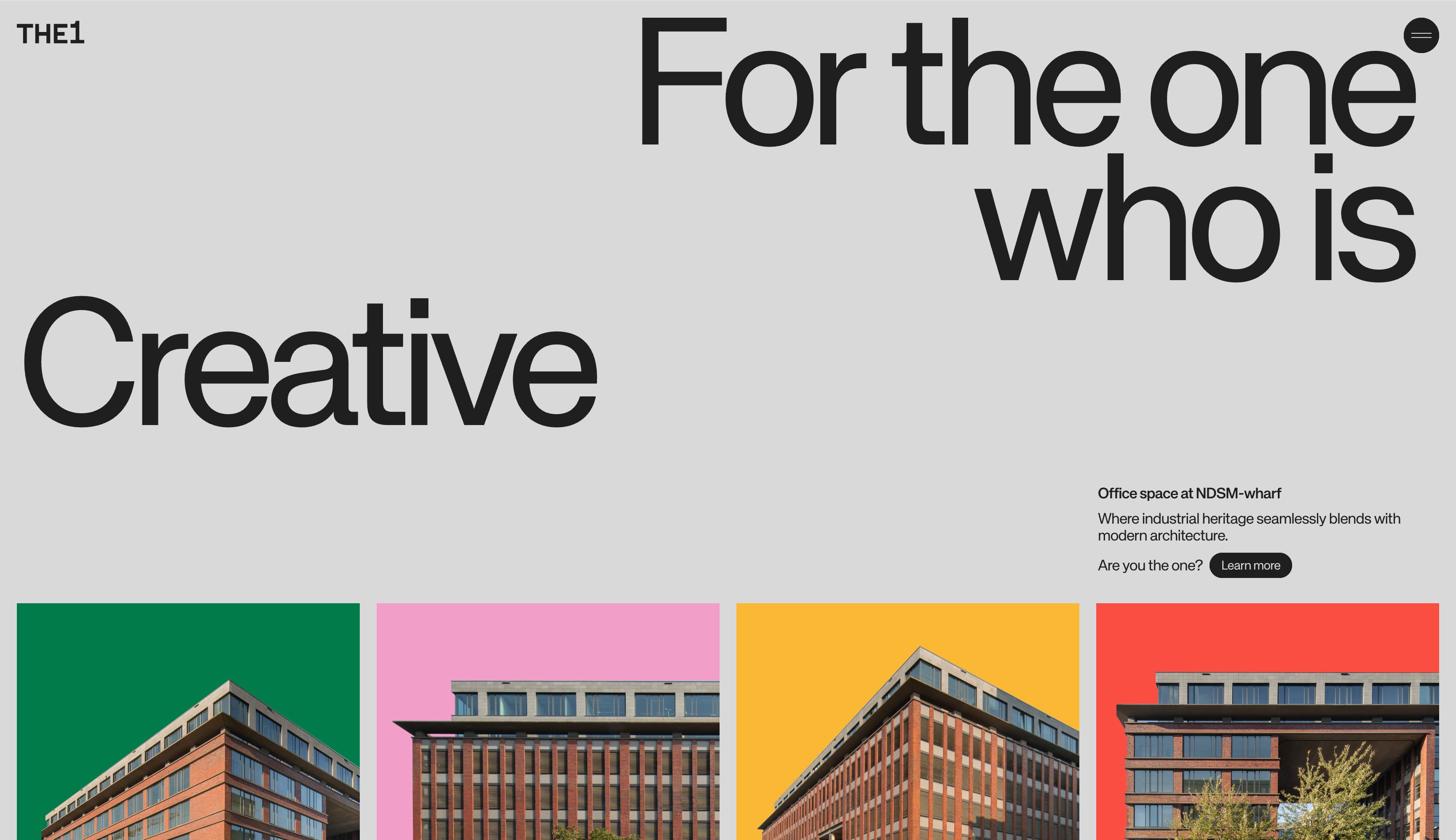 On The1’s website, component breakpoints direct the responsiveness of the headline and grid components. The desktop version displays a large headline with a grid of four space types in their office building. But on mobile, the page displays a much smaller headline at 640 pixels, and the grid options get stacked above each other.