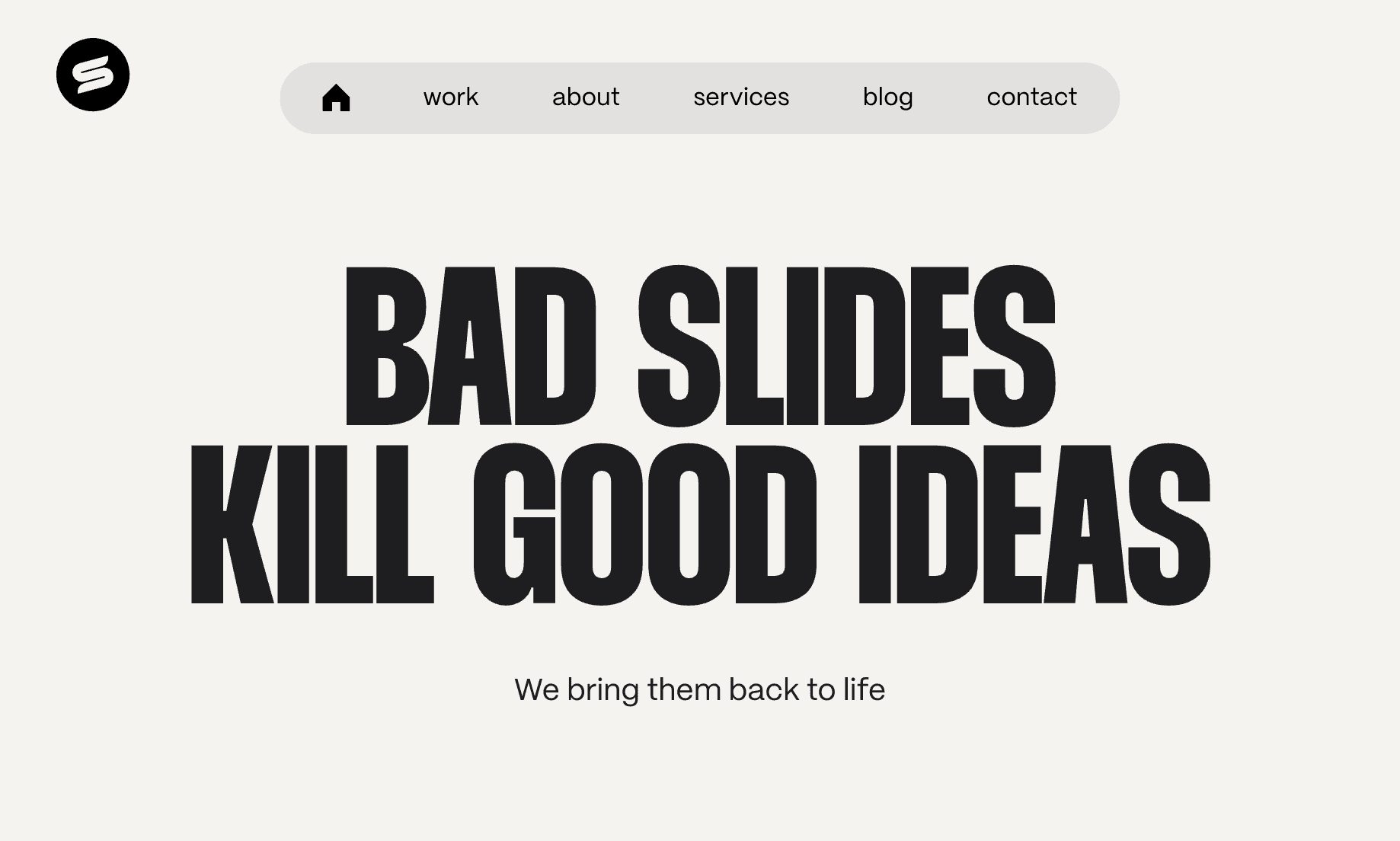 You won’t surprise anyone with these choices—and that’s exactly the point. These norms have been around for decades and are deeply ingrained in user behavior. The benefit, as with this example below from Slides Agency, is a user interface that visitors understand in milliseconds.
