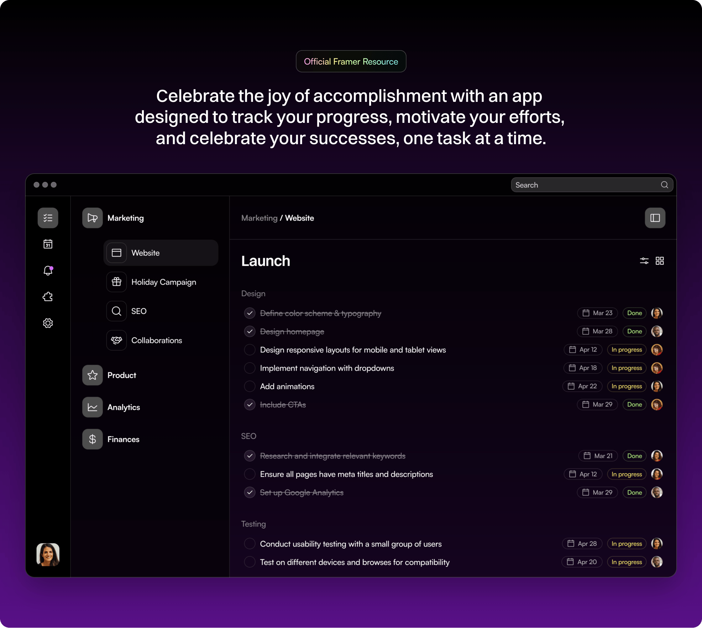 Celebrate the joy of accomplishment with an app designed to track your progress and motivate your efforts.
