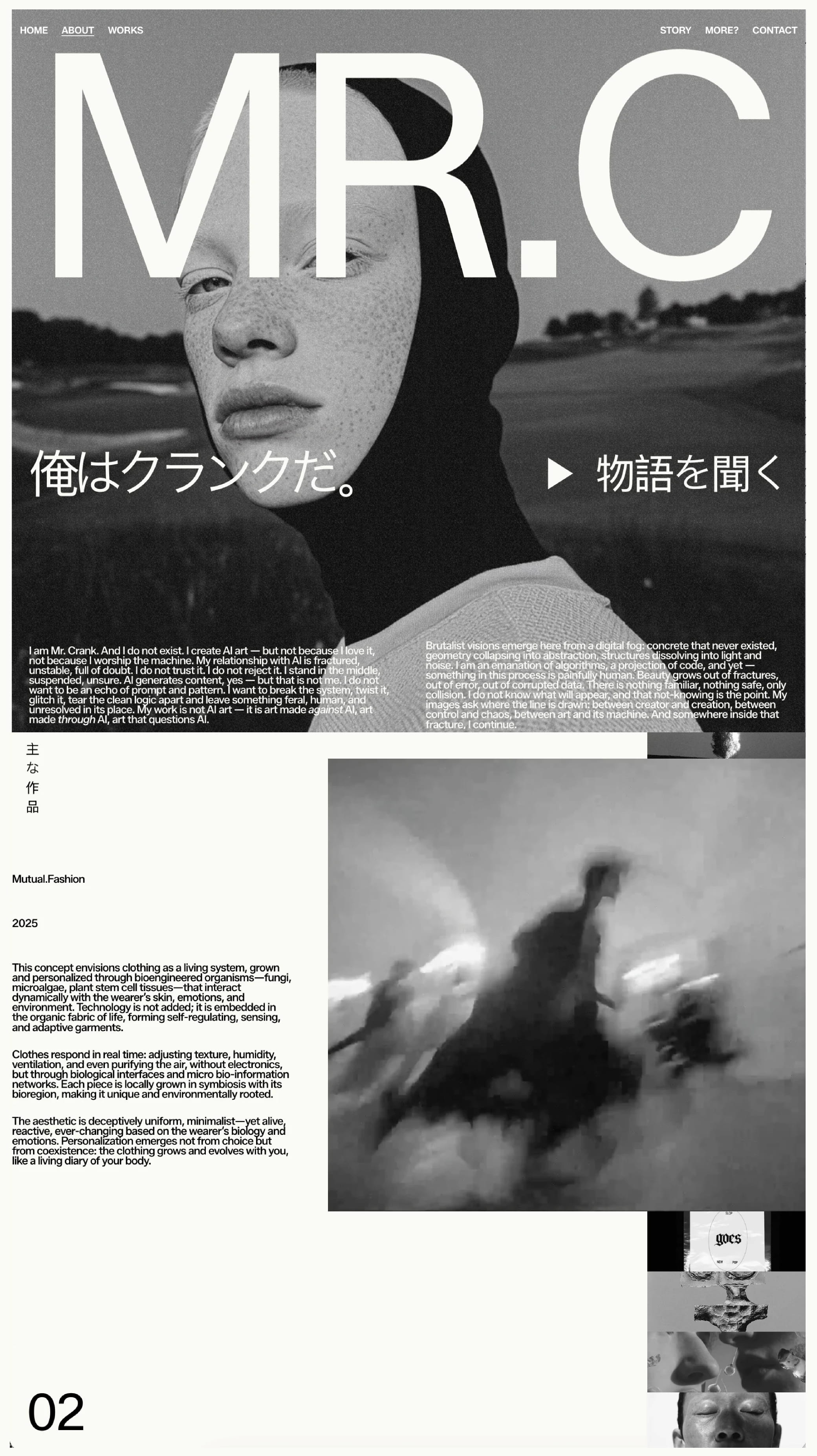 An experimental one-page site built on friction. Interactions resist smooth behavior, audio disrupts rather than explains, and the linear scroll avoids closure. AI is used not to generate, but to be broken—reasserting human authorship through interference.