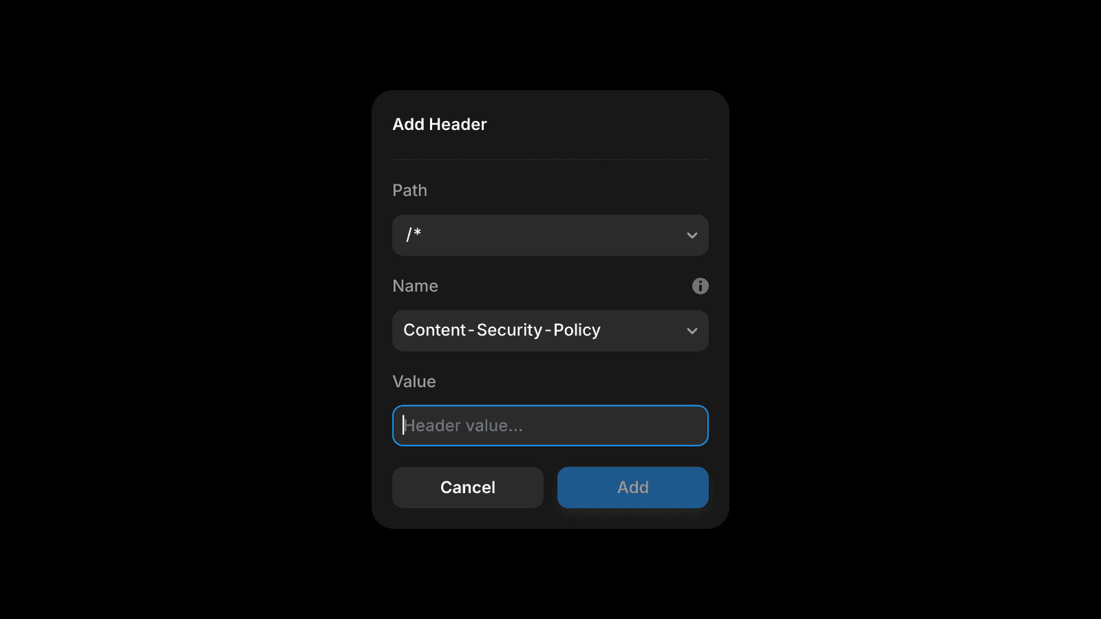 /,/blog/*,/login)Select the header name (e.g.,