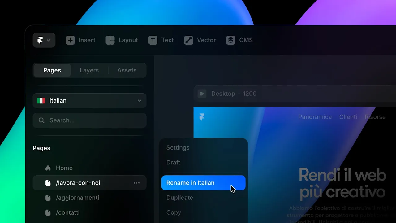 In Framer, these come from the page names you see in the page panel. Translating them creates a more native experience for visitors and helps search engines properly index localized content, improving SEO and visibility in each market.