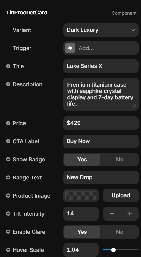 4 variants: Dark Luxury, Glass, Minimal, Neon
