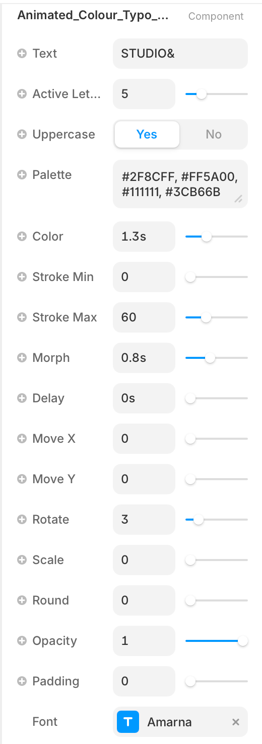 Customize everything directly from the panel — control text, stroke, colors, and animation behavior without touching the code.