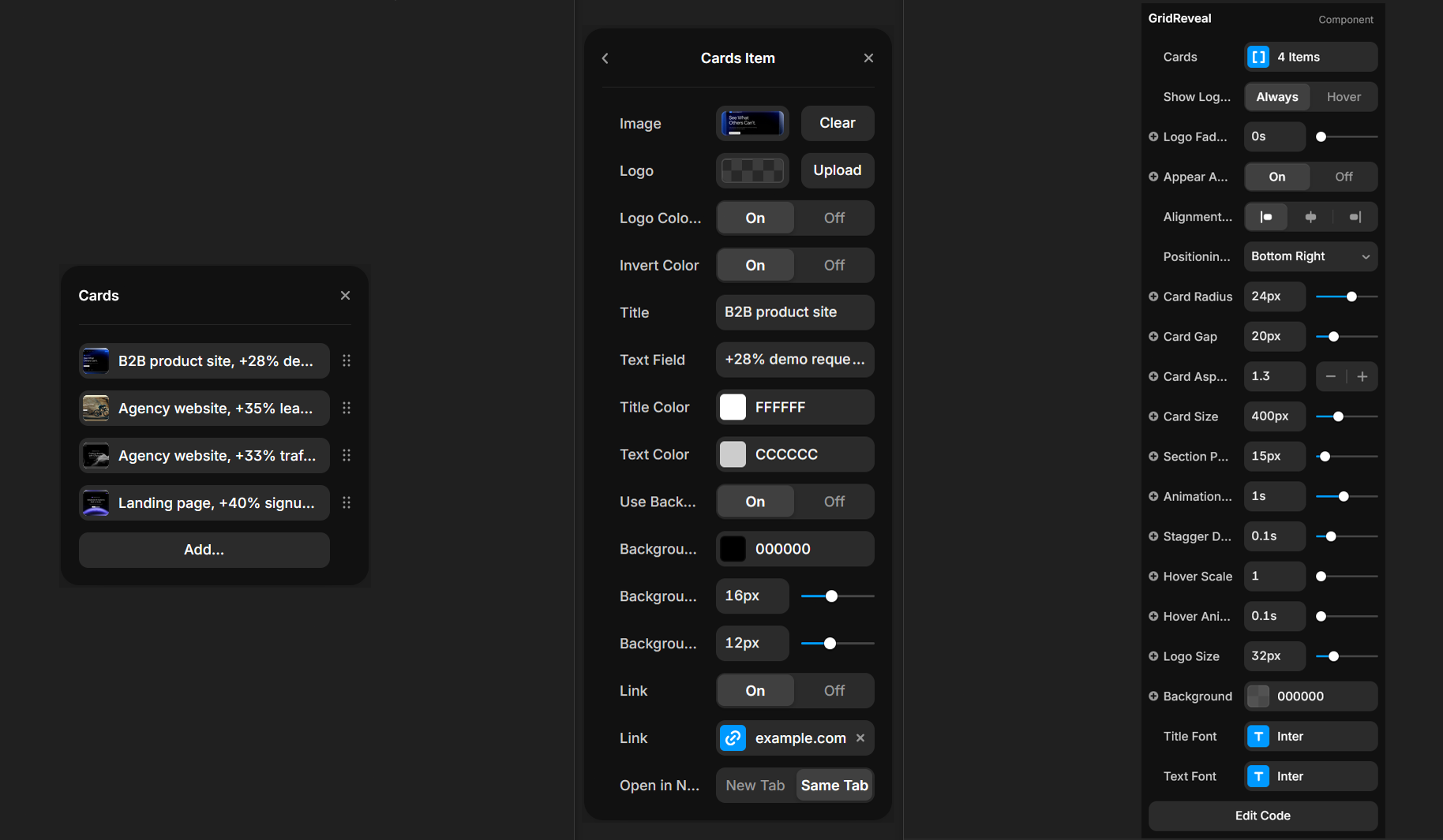 Fully adjustable grid: gap, card size, aspect ratio, and border radius