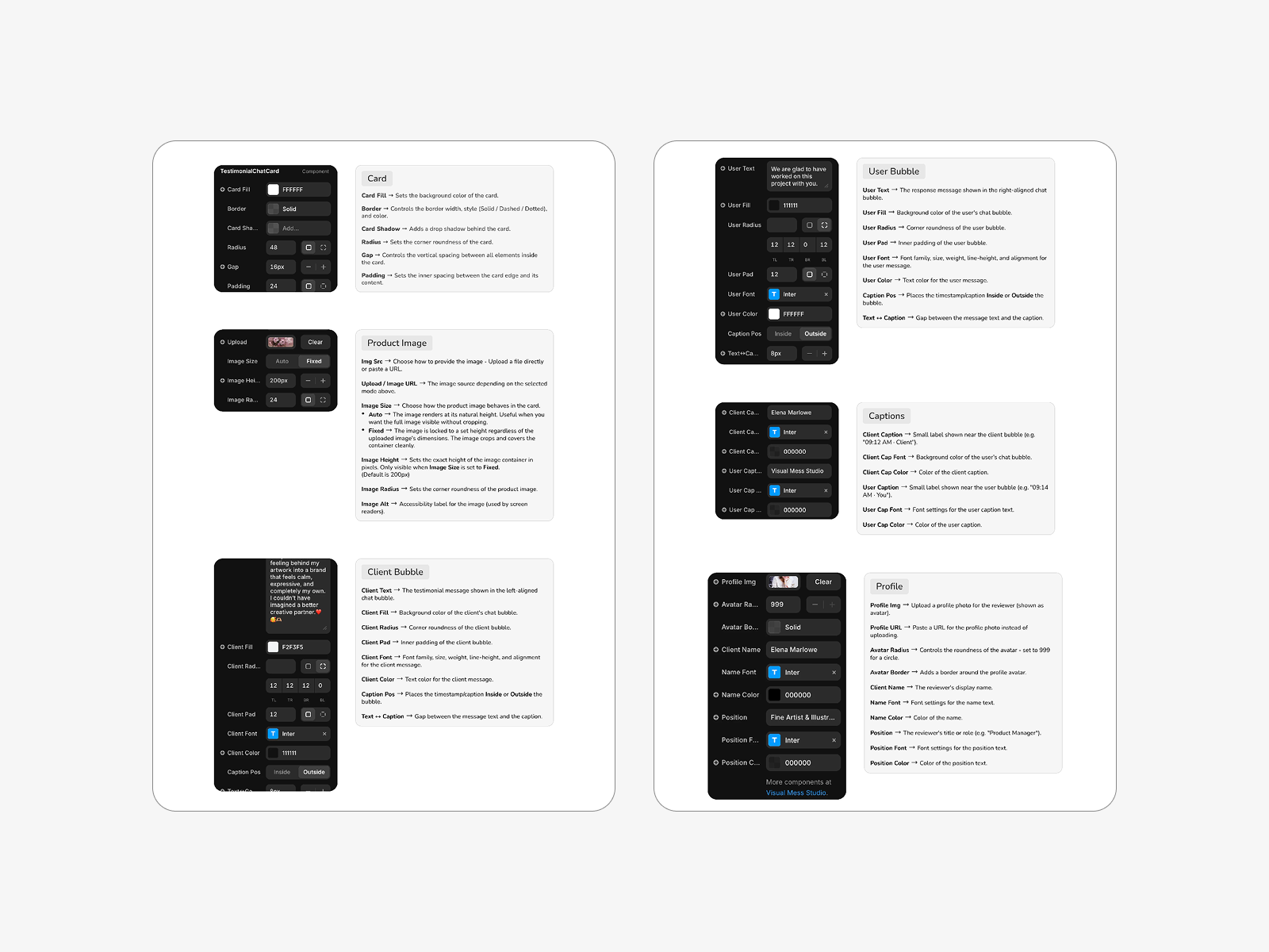 The component features a two-bubble conversation format, where the client message appears on the left and your brand response appears on the right. This simple interaction helps highlight your work while also making testimonials feel more personal and memorable.