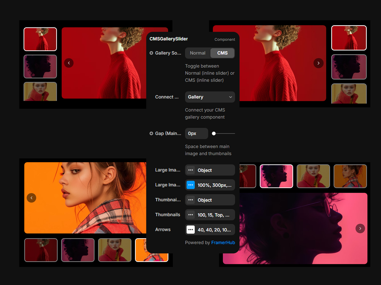 CMS Gallery Slider – A versatile gallery slider with CMS integration, thumbnail navigation, and smooth animations. Perfect for product pages, portfolios, and image showcases.