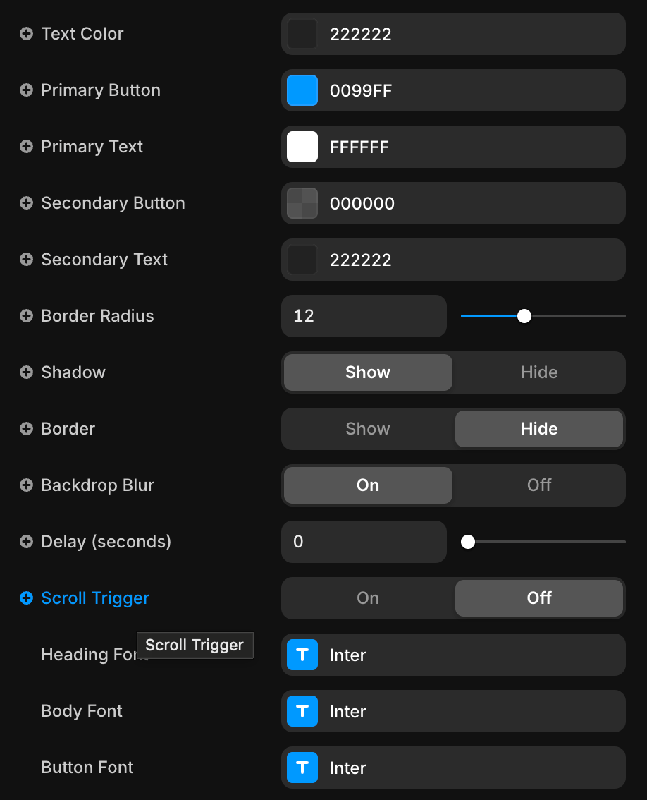 Smart triggers: Show on delay or after scroll percentage