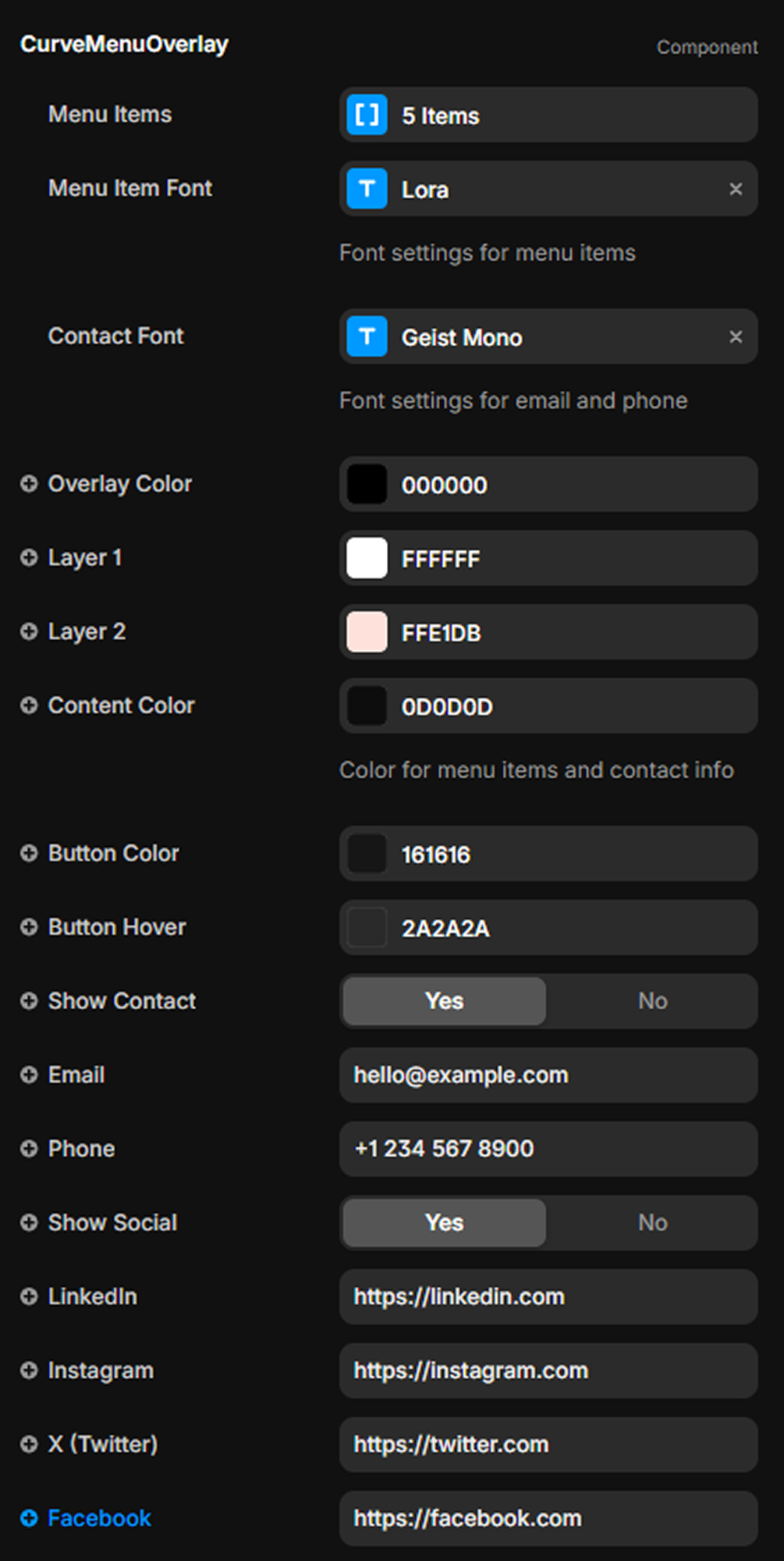 Curve Menu Overlay is a one step higher version of our FullScreenMenu framer component—this one adds the power of GSAP to create stunning curvy menu animations.