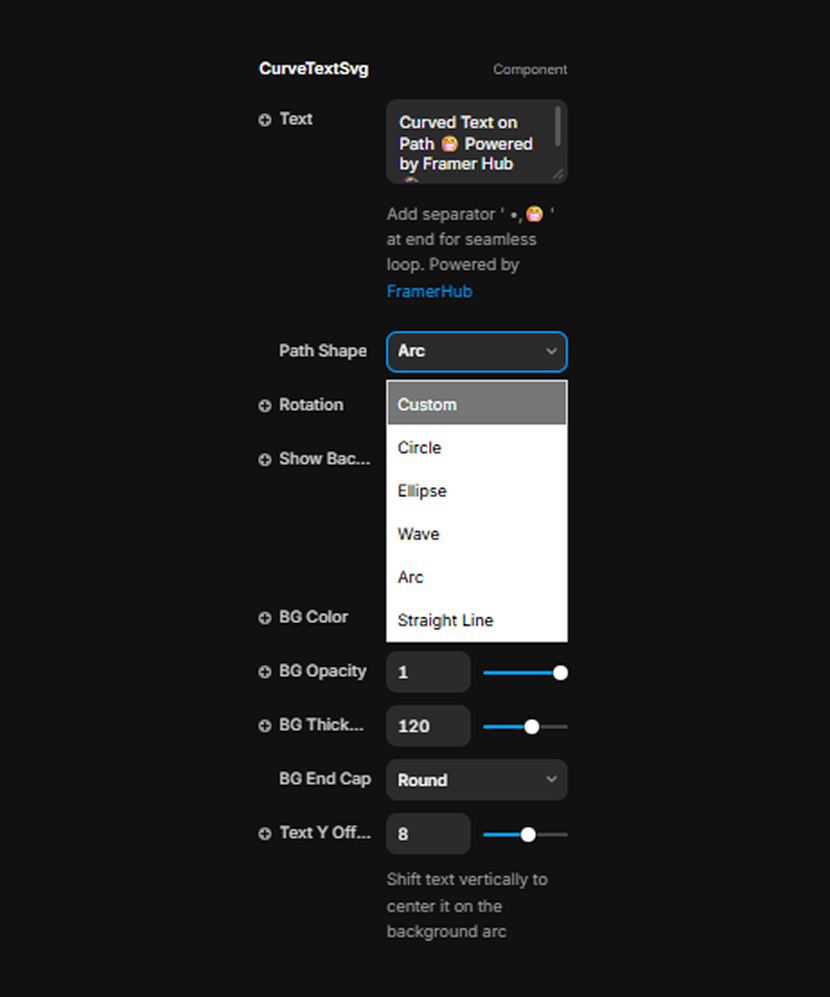 - Custom Path: Enter SVG path data (when Custom is selected)