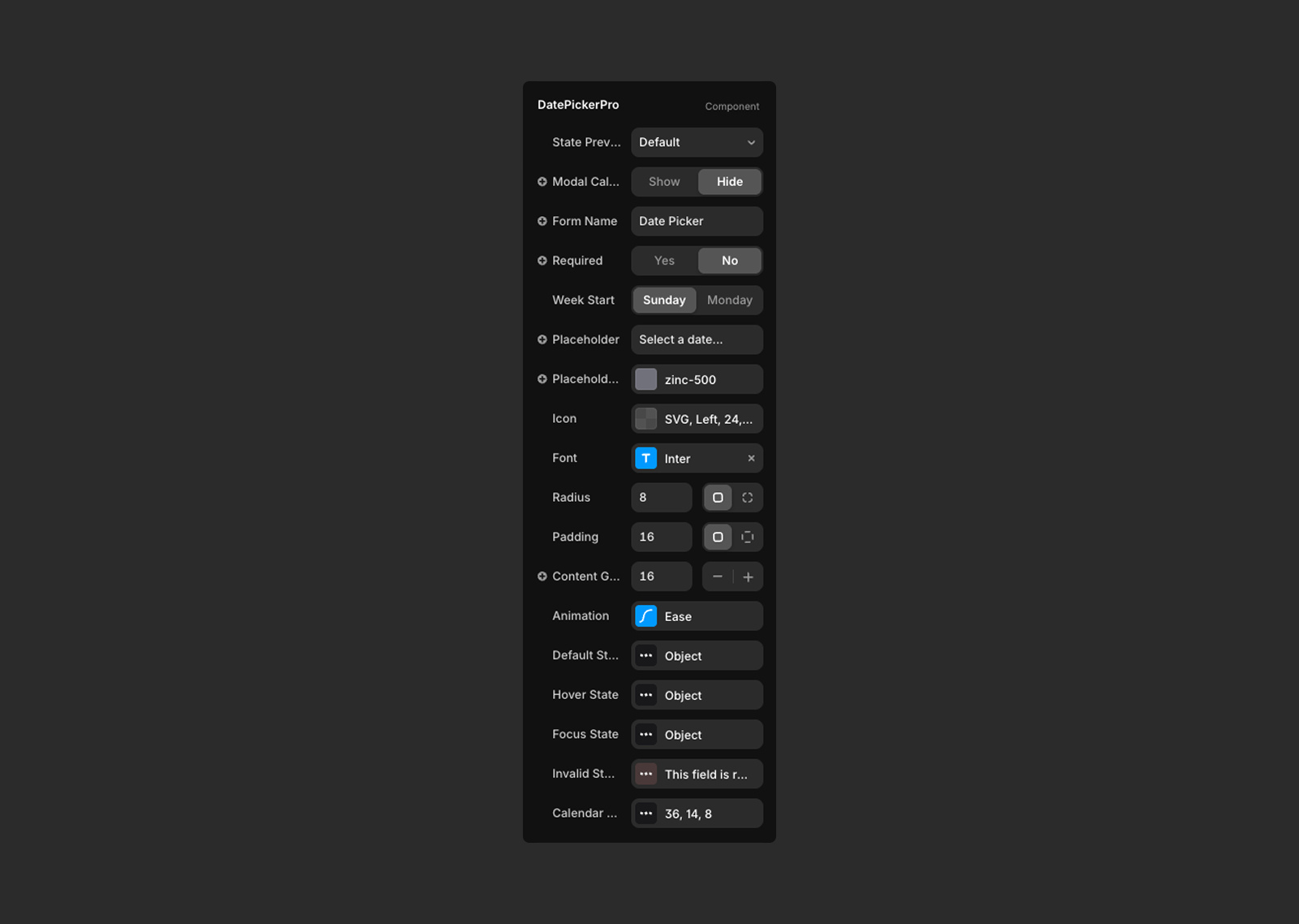 Scheduling is the final touchpoint of a high-end service. DatePicker Pro transforms the standard, frustrating date input into a sophisticated, motion-driven experience. Whether you need a simple event selector or a complex booking interface, this component handles the localized logic so you can focus on the aesthetic. It eliminates the gap between static design and interactive complexity, offering a "senior-dev" quality that manual stacks simply cannot achieve.