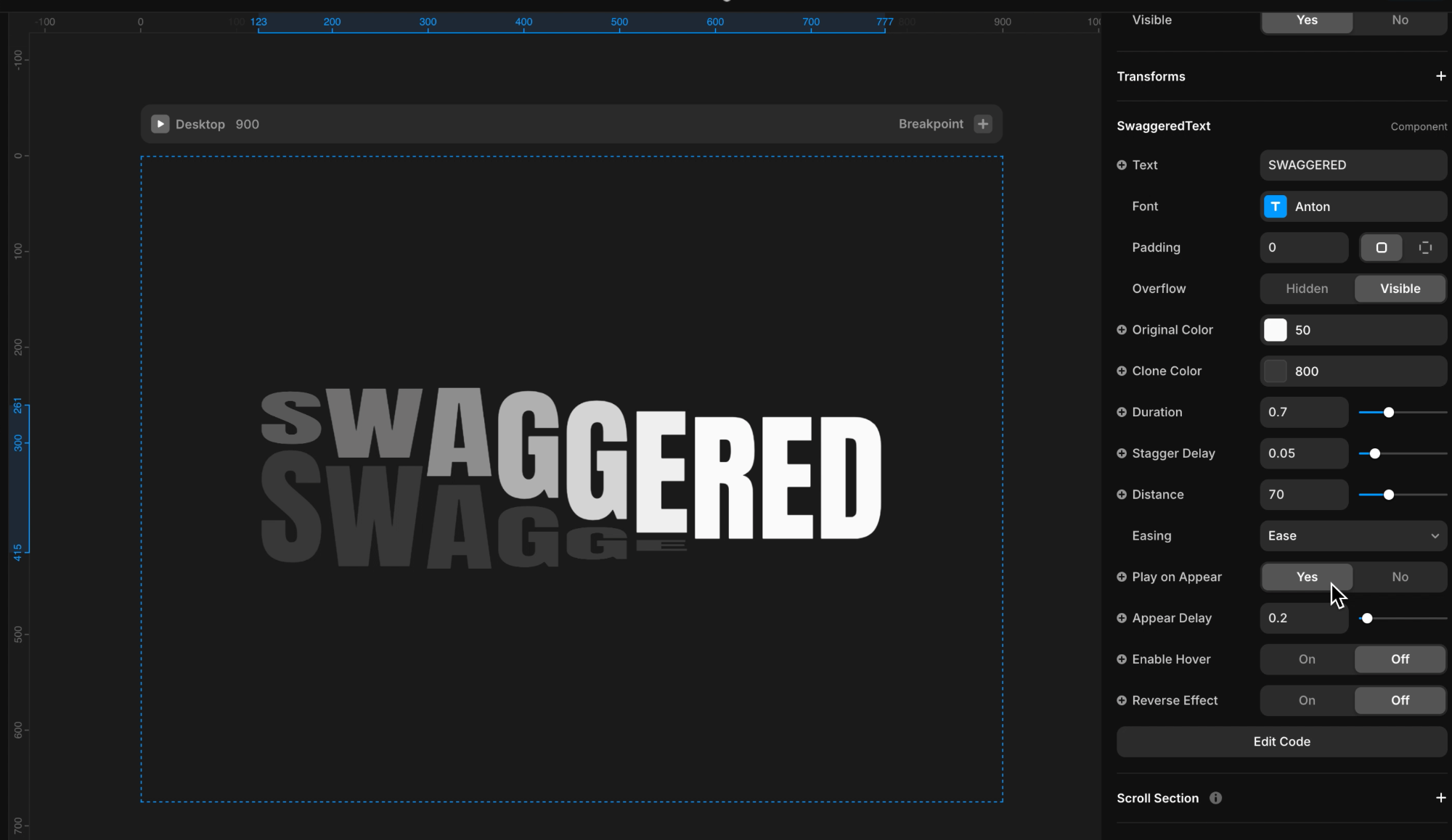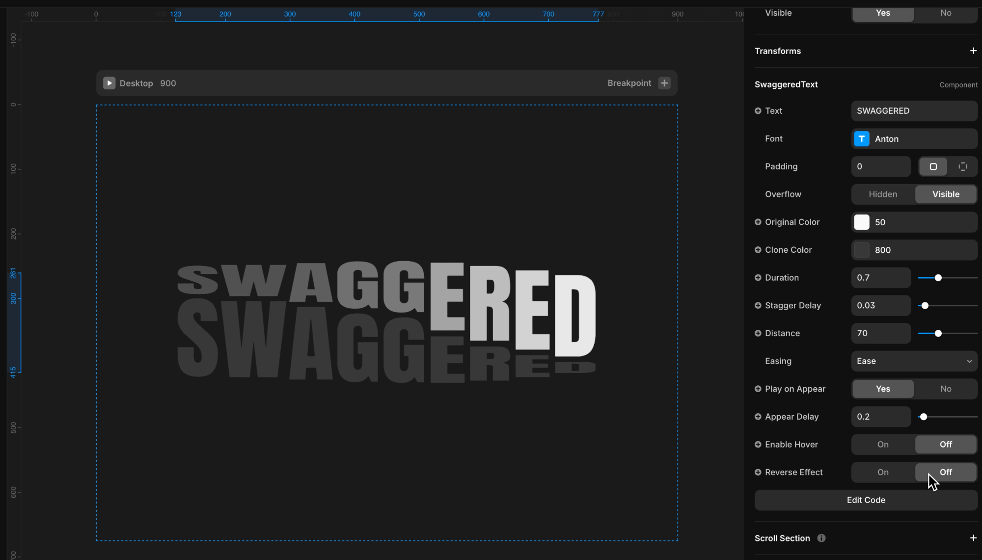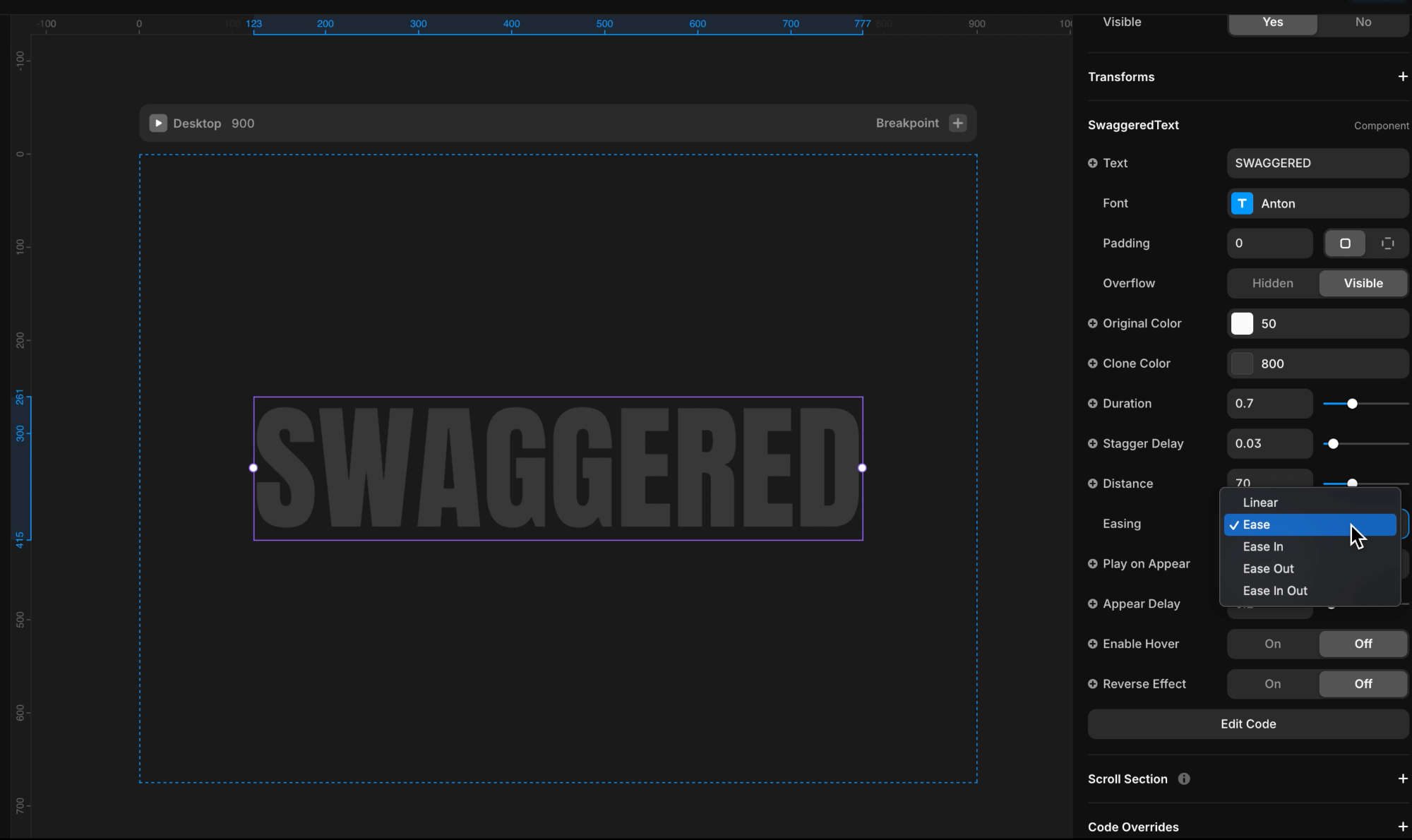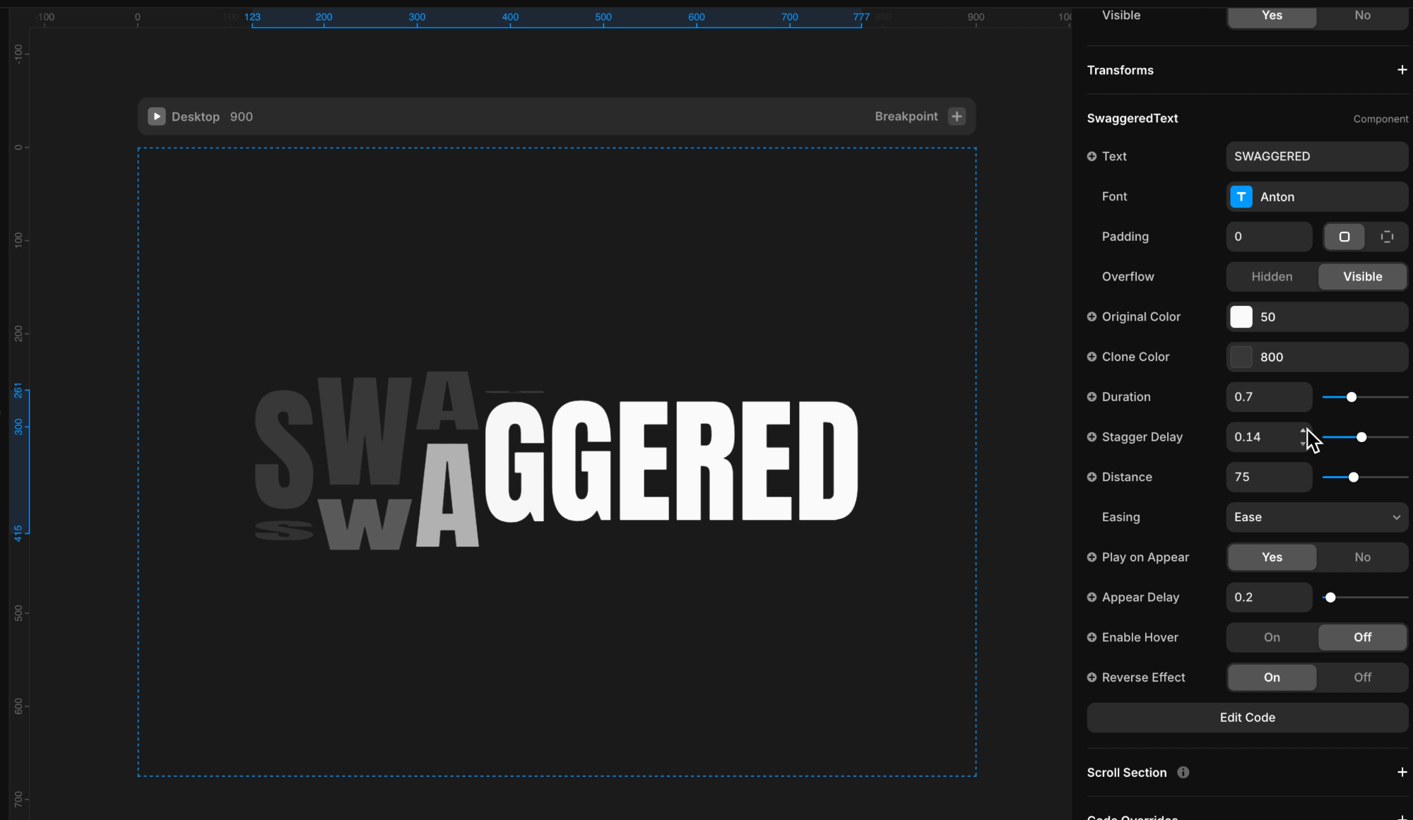 Adjust the duration, stagger delay, easing, and 3D distance to control the timing, spacing, and depth of the animation.