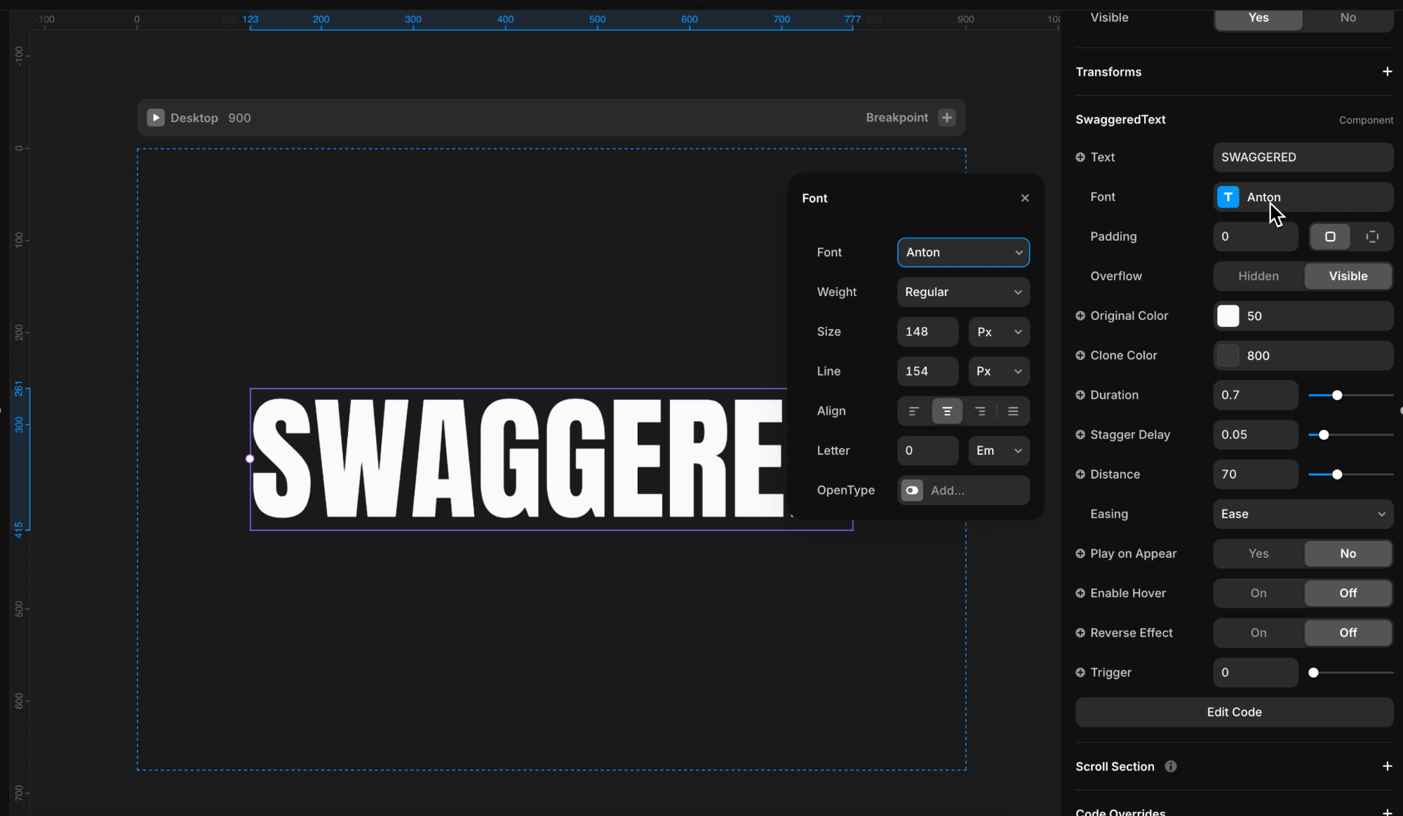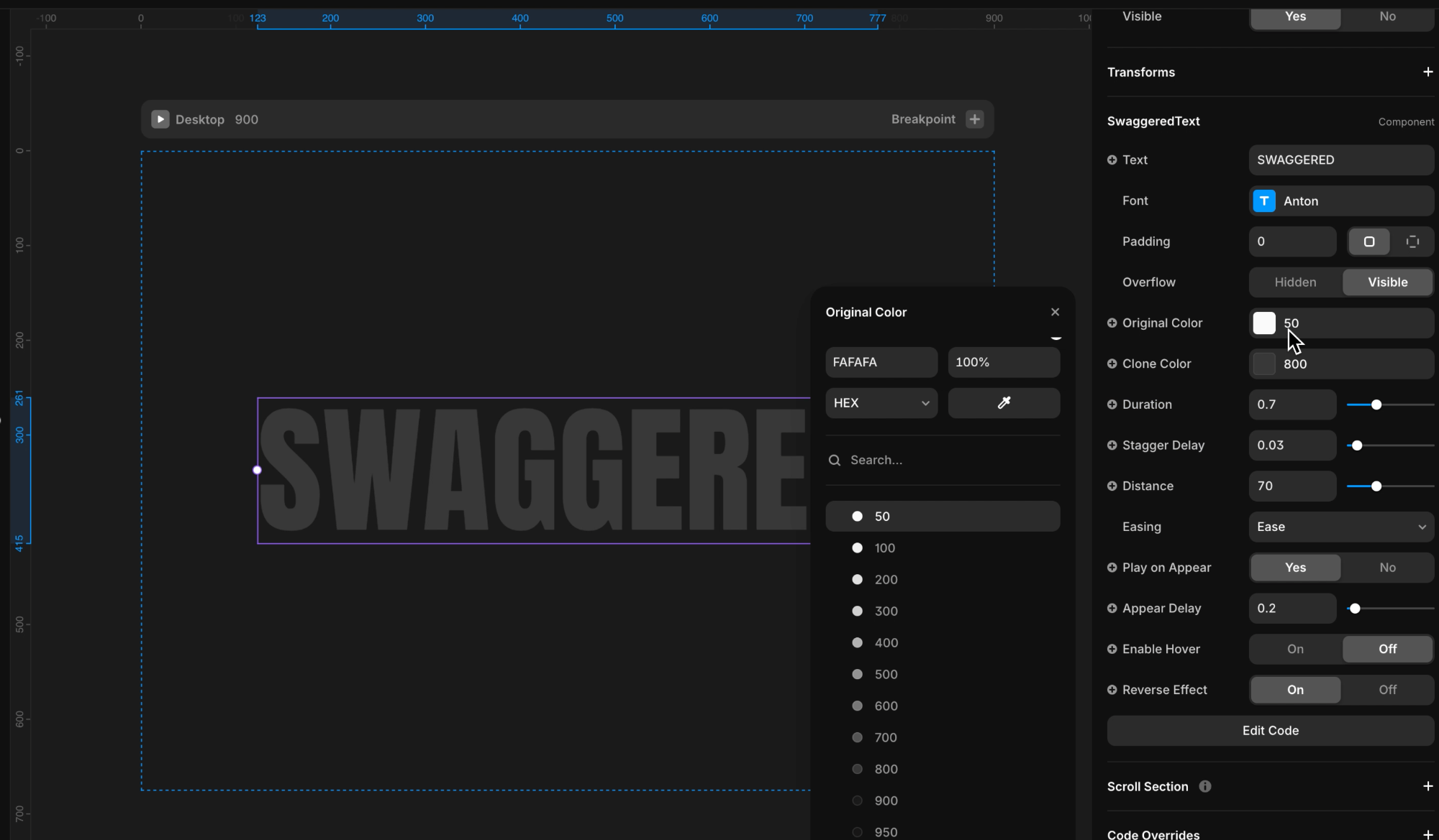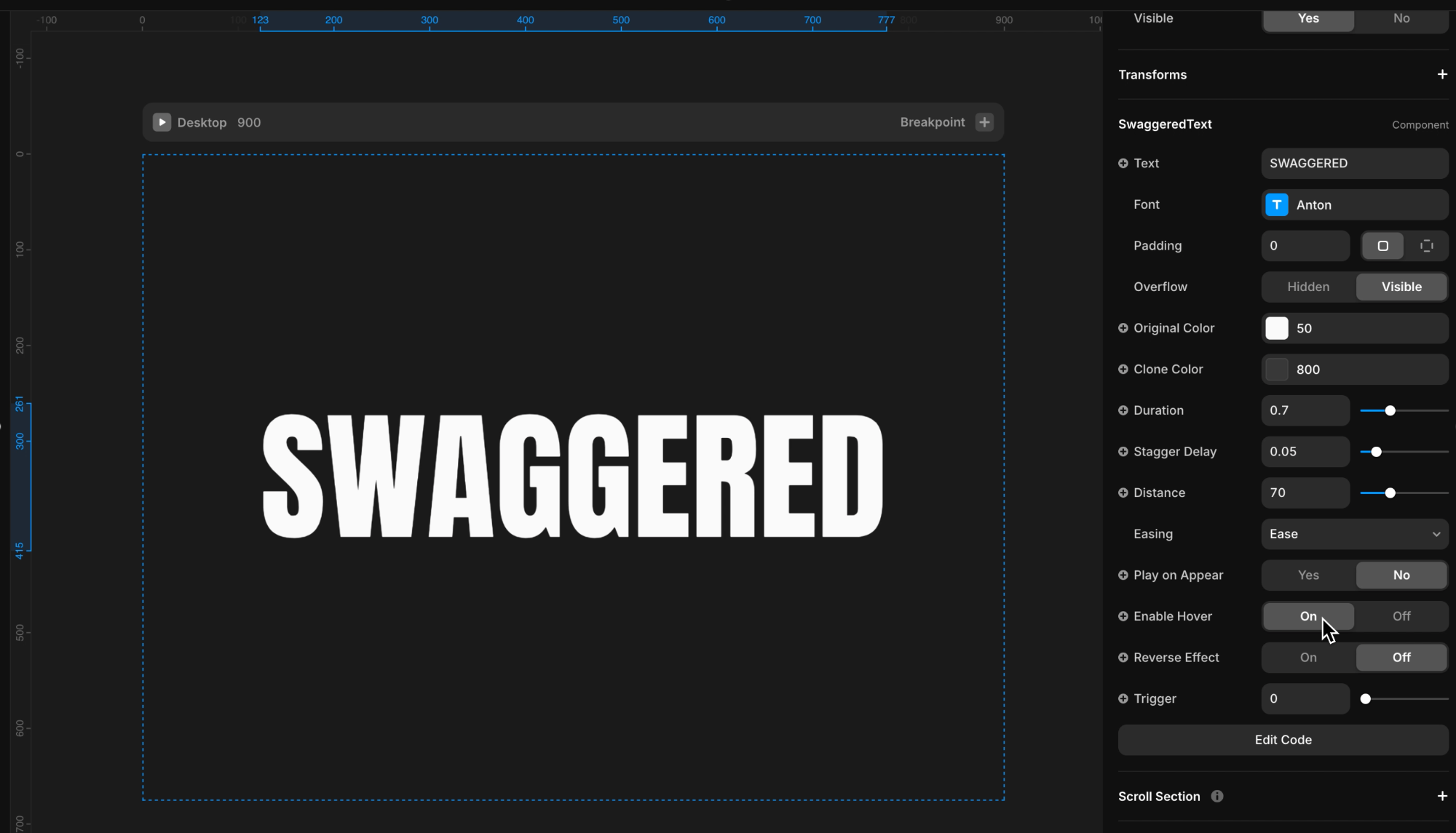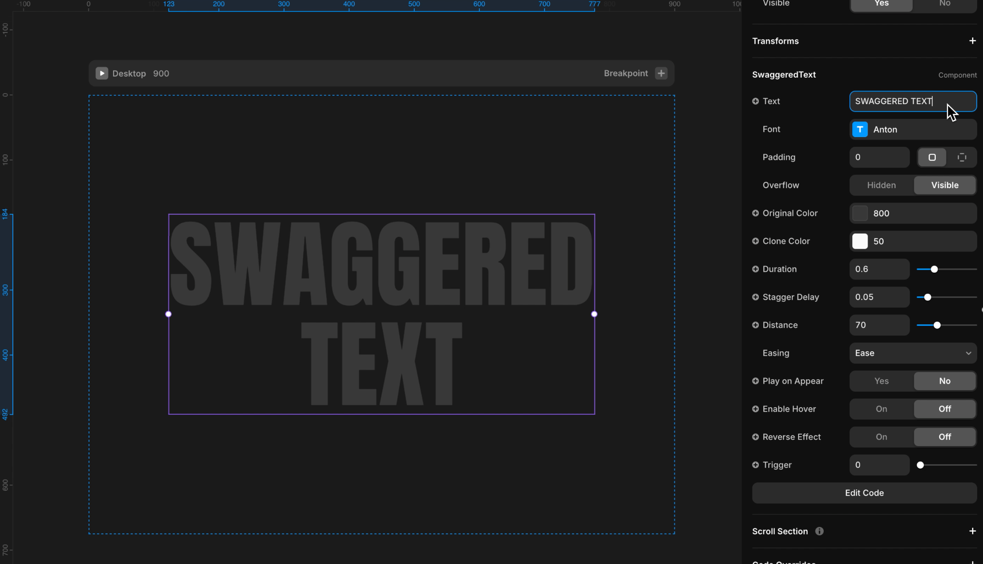 Adjust the duration, stagger delay, easing, and 3D distance to control the timing, spacing, and depth of the animation.