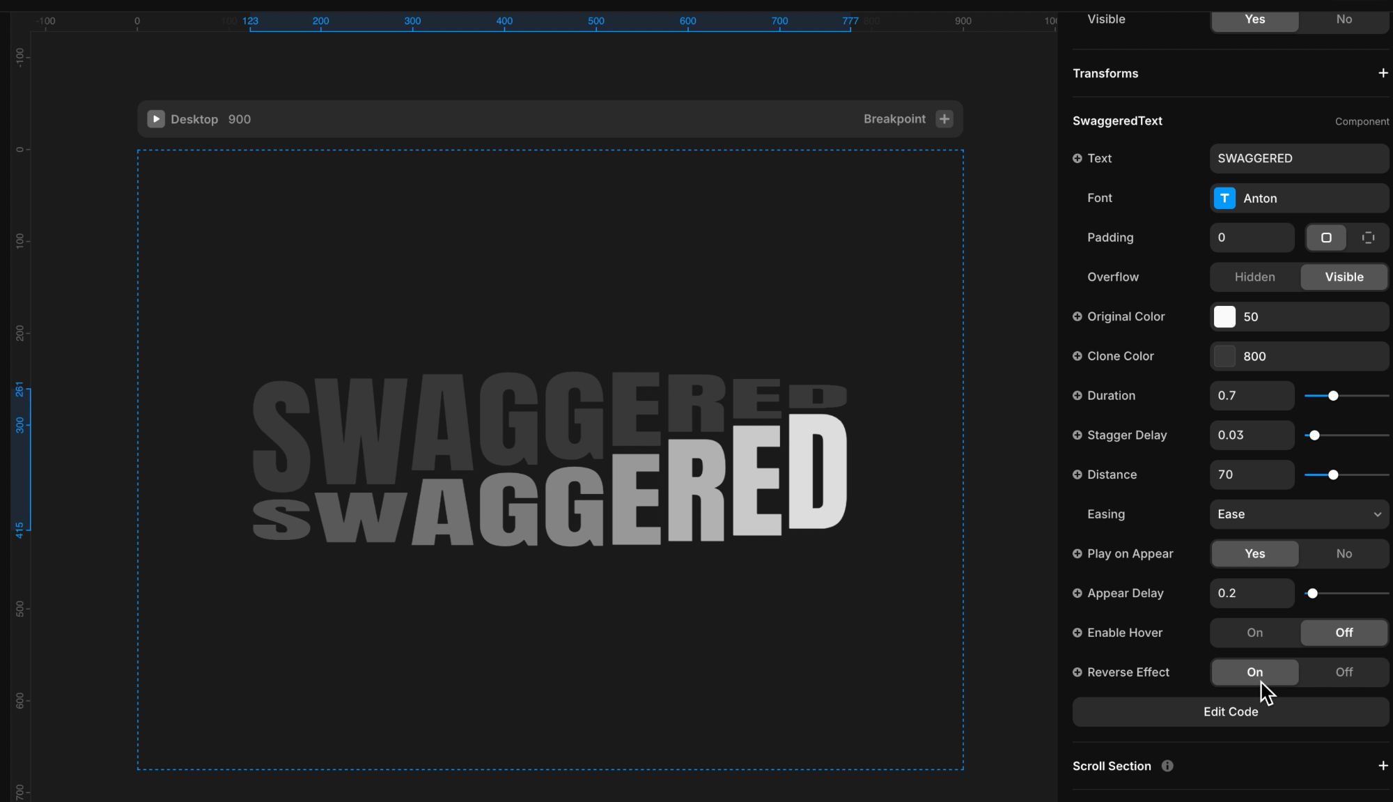Enable a reverse animation effect to toggle between the original and clone text, allowing for creative animation sequences.