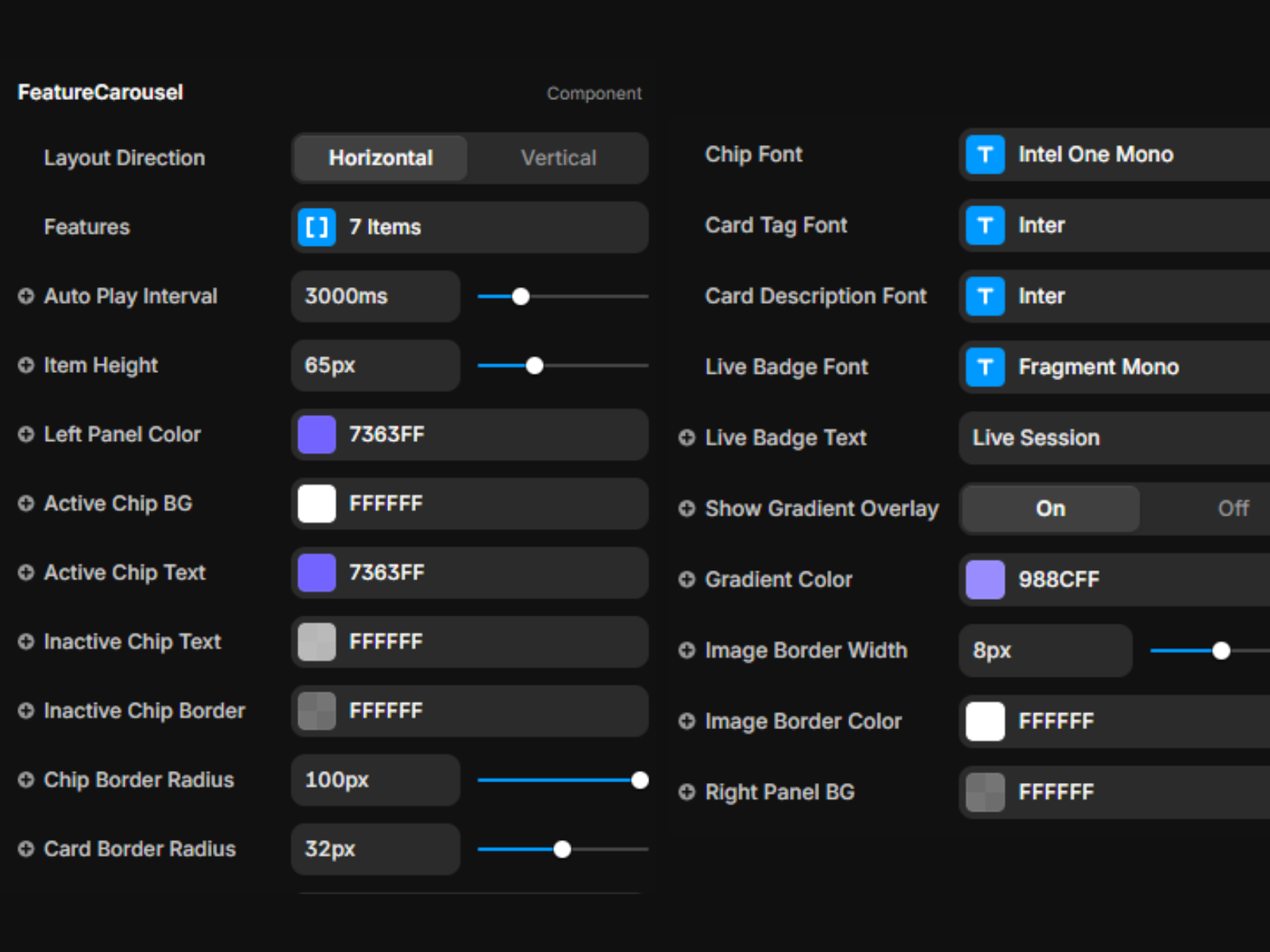Gradient Color · Right Panel Background · Image Border Color