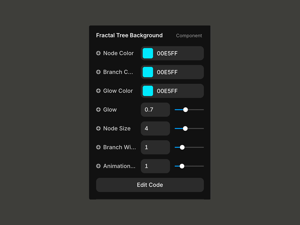 Customize the look directly in Framer with intuitive controls for node color, branch color, glow intensity, animation speed, node size, and line thickness. Whether you want a subtle ambient background or a striking animated centerpiece, the fractal system scales beautifully.