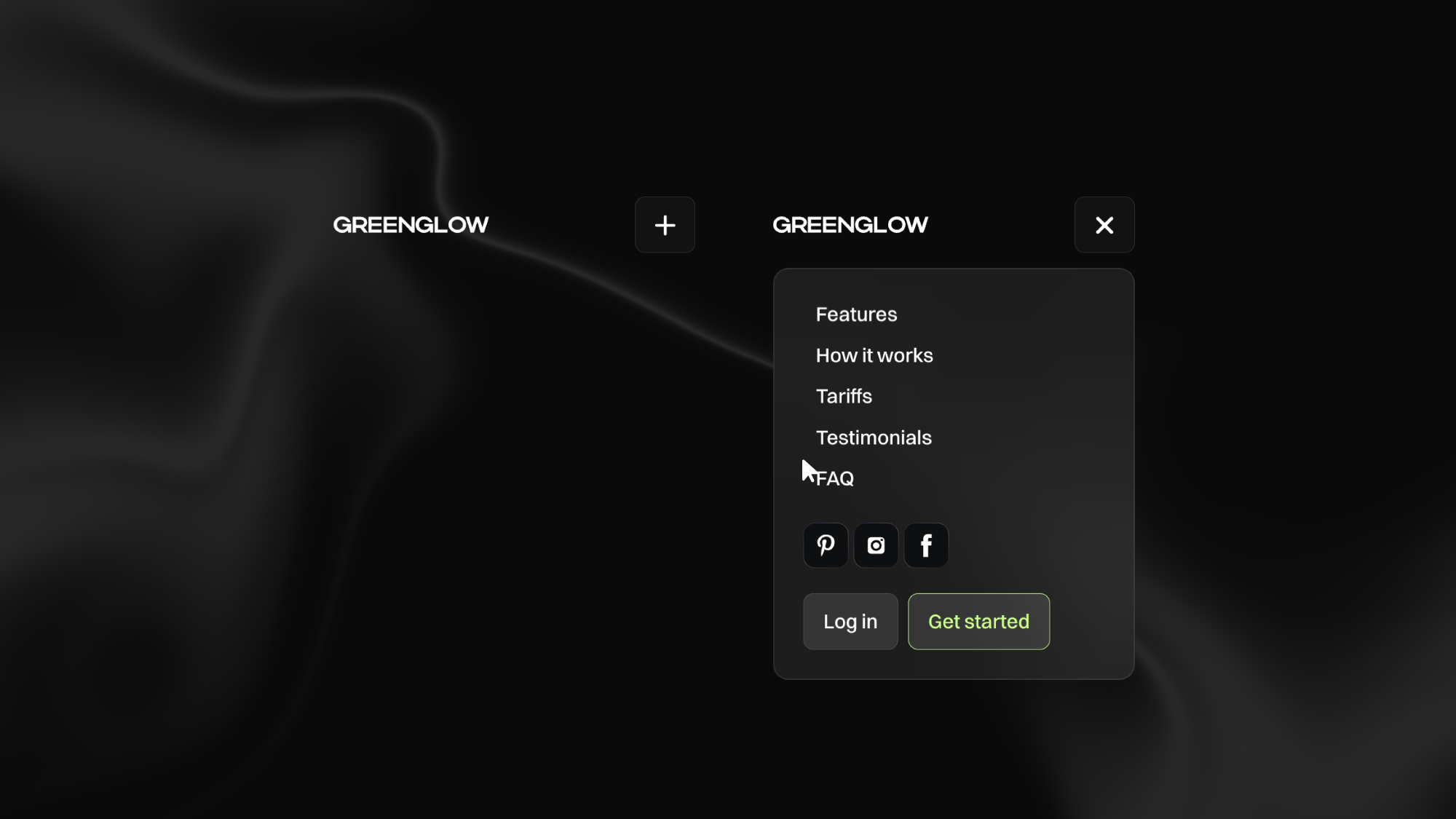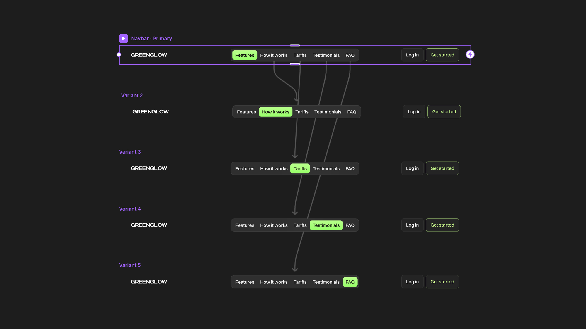 Optional action buttons (such as “Log in” or “Get started”) are included and can be enabled or disabled depending on your layout needs. Perfect for SaaS websites, landing pages, and modern product interfaces.
