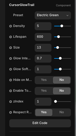 ✅ Touch Support – Optional trail effects on mobile devices with adjustable density and size