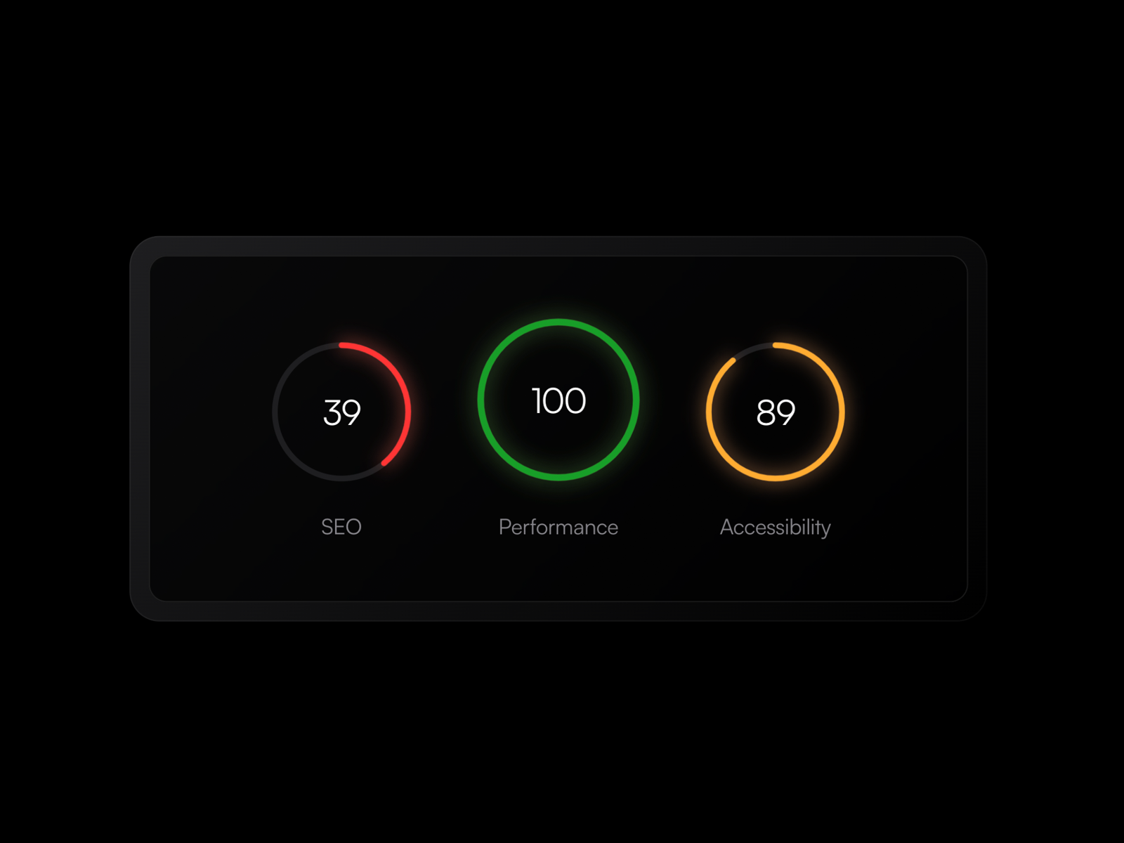 PageSpeed Insights style metrics such as Performance, Accessibility, Best Practices, SEO