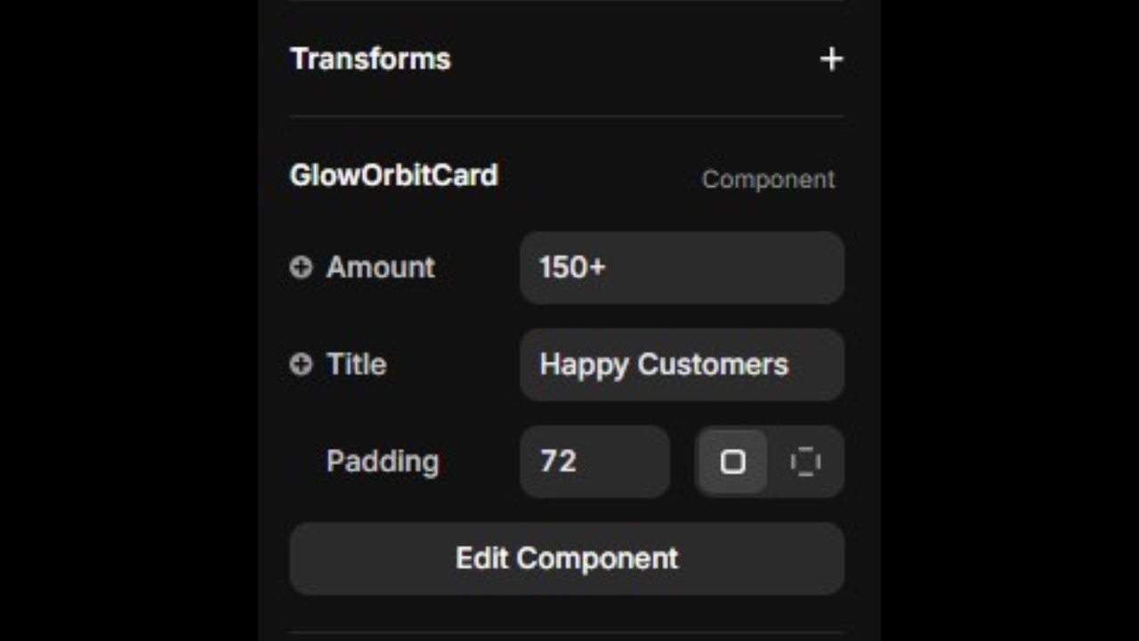 • Editable stat and label text (e.g., “150+” / “Customers”)