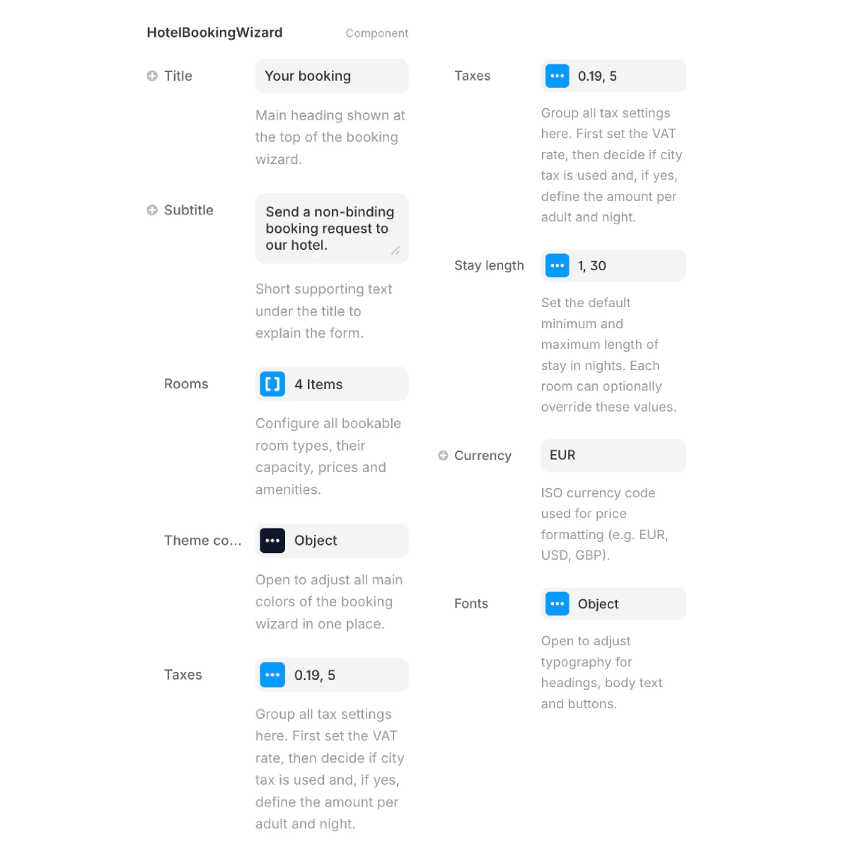 Turn your Framer site into a high-converting booking experience with this polished multi-step reservation wizard. Built for hospitality, it upgrades the typical “basic form” into a clean, guided flow that feels like a real booking engine — perfect for hotels, resorts, boutique stays, and vacation rentals.