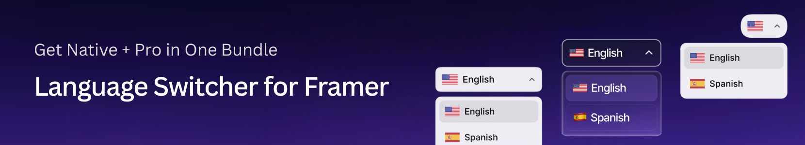 Language Switcher is a fully customizable locale selector built using Framer’s native tools and localization system - no code component required. It lets you add a clean, flexible language dropdown to your multilingual Framer sites with full visual control.
