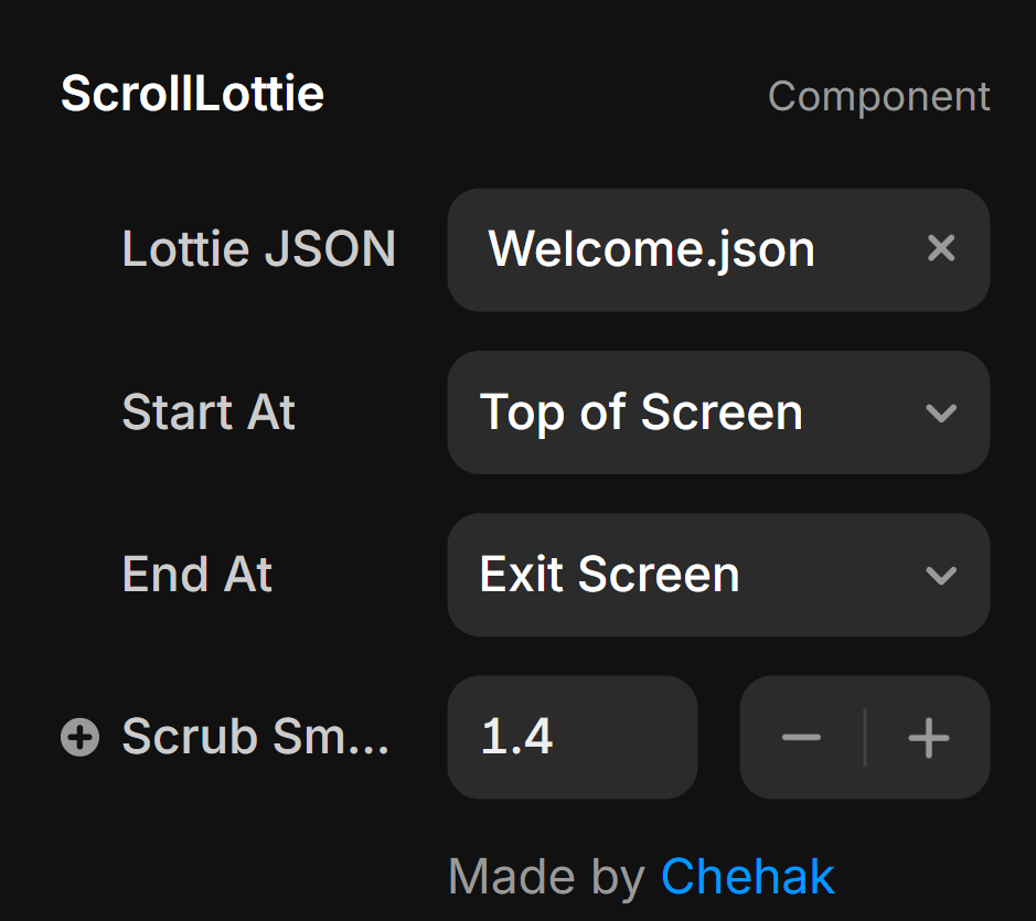 Lottie On Scroll lets you control a Lottie animation using the user’s scroll. Instead of autoplaying, the animation progresses as the page scrolls forward when scrolling down, backwards when scrolling up.