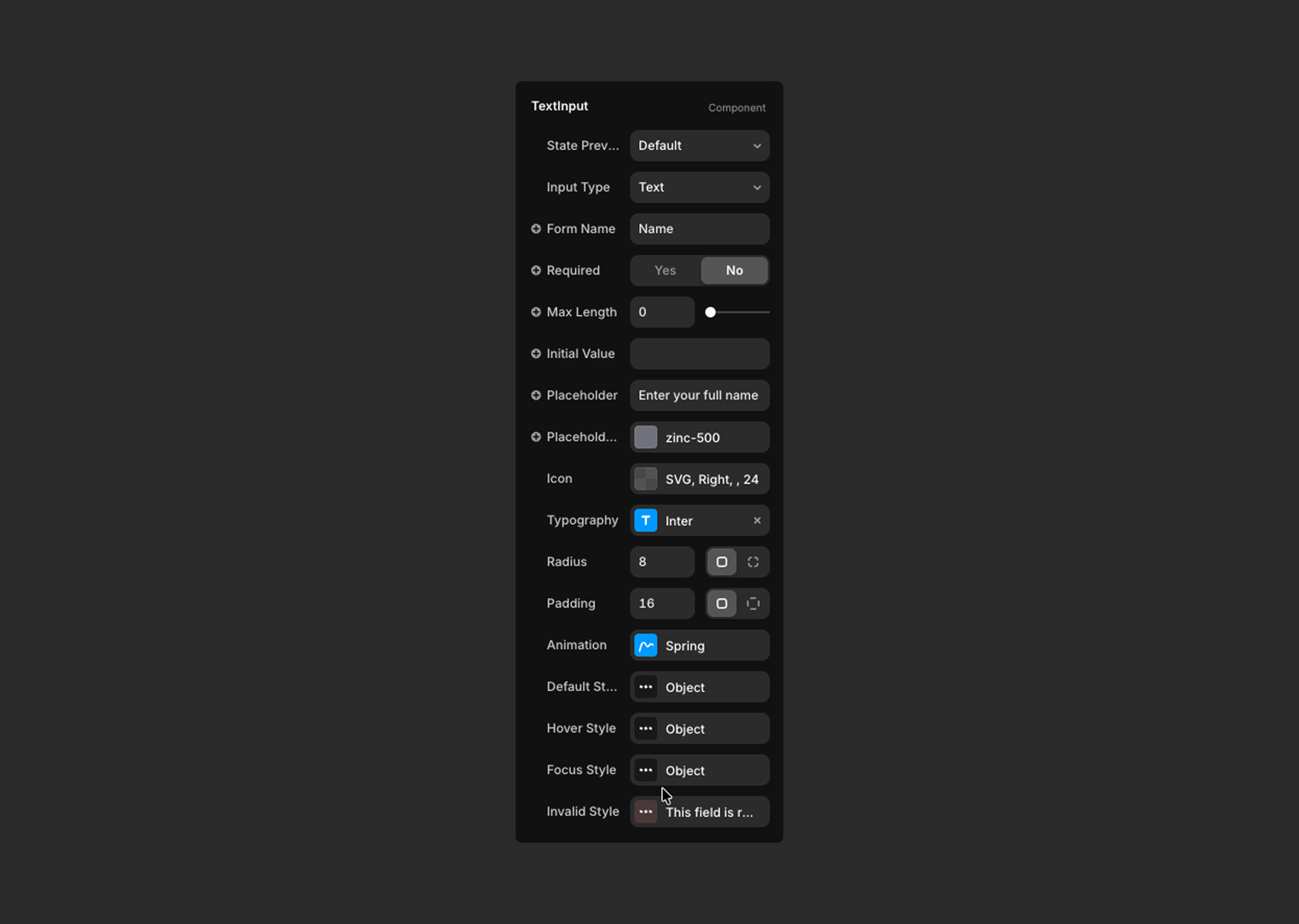 Smart Validation & States: Sophisticated handling for Hover, Focus, and Invalid states. Customize error messages and gaps to guide users through successful form completion.
