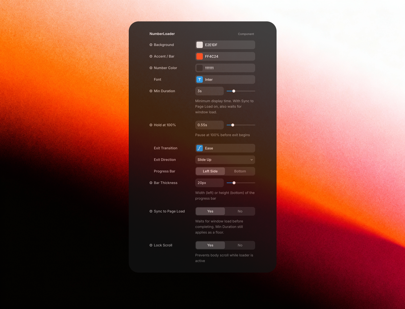 The loader can sync to real page load events or simulate organic progress timing — giving you full control over performance and perception.