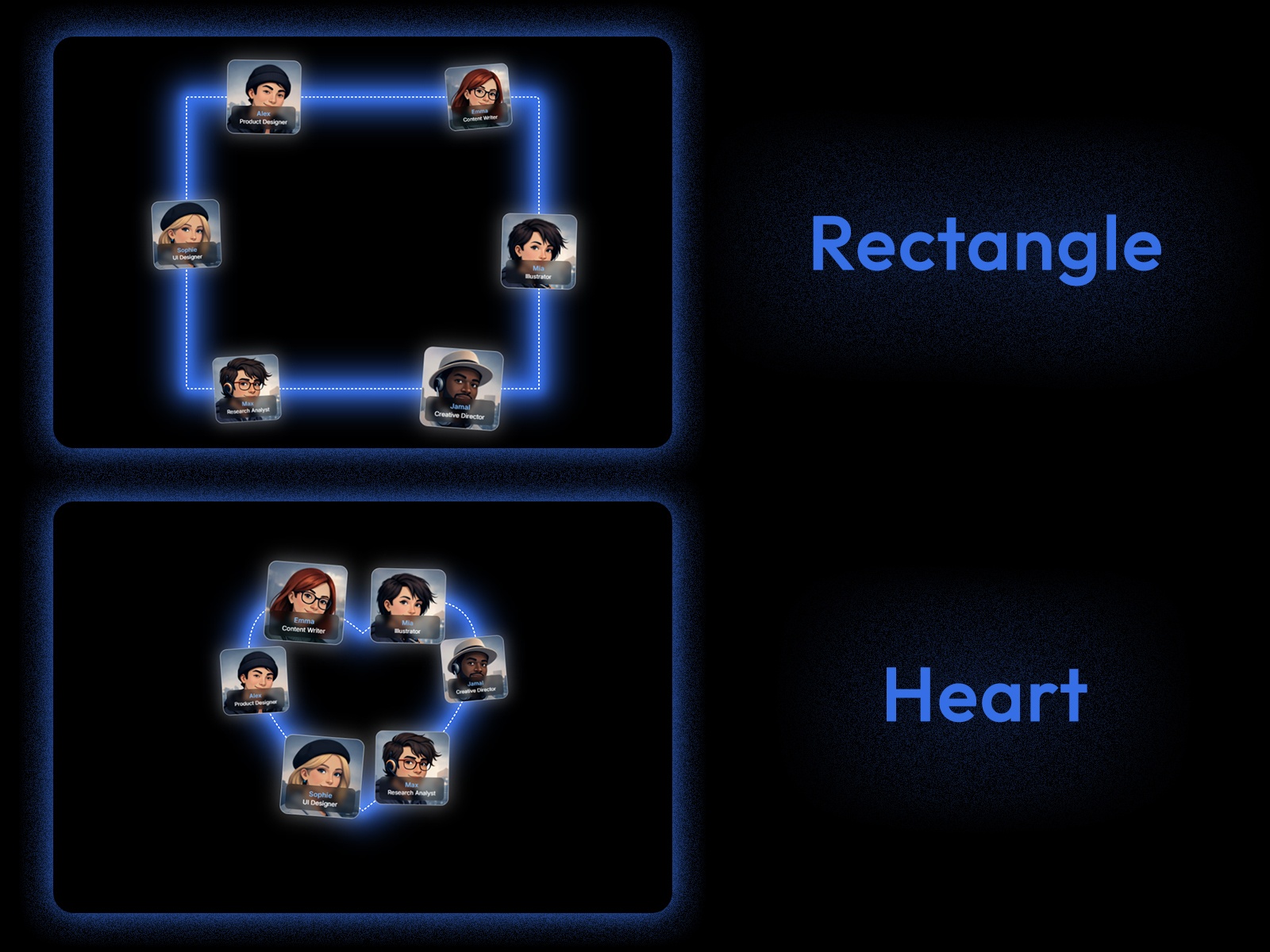 What makes it different is the shape system. Instead of locking you into a simple circular orbit, it gives you multiple path styles, including expressive shapes like Heart and Infinity, plus the flexibility to upload a Custom SVG for a more original layout.