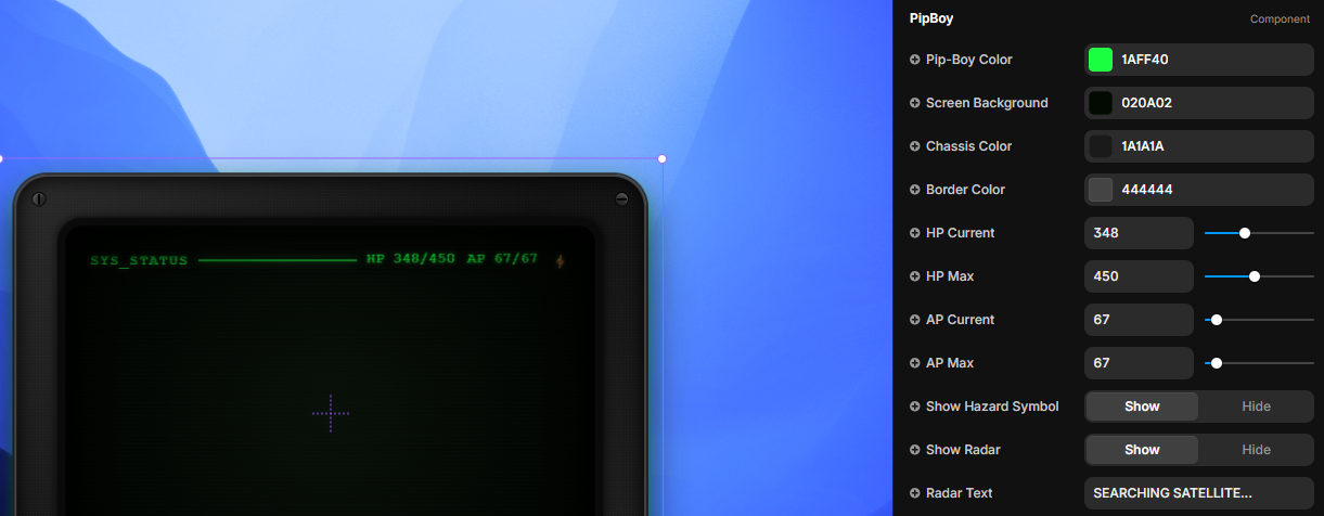 framer retro terminal · framer pipboy component · framer fallout UI · framer CRT terminal · framer gaming component · framer retro UI · framer terminal widget · framer game interface · framer scanline effect · framer retro component · framer cyberpunk UI · framer interactive terminal · framer sci-fi component · framer code component · framer vintage terminal