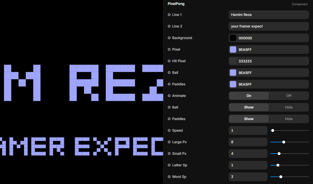 framer pixel text · framer retro animation · framer pong animation · framer arcade component · framer pixel animation · framer retro text · framer canvas animation · framer pixel component · framer gaming component · framer bouncing ball · framer retro component · framer animated text · framer creative typography · framer code component · framer pixel art