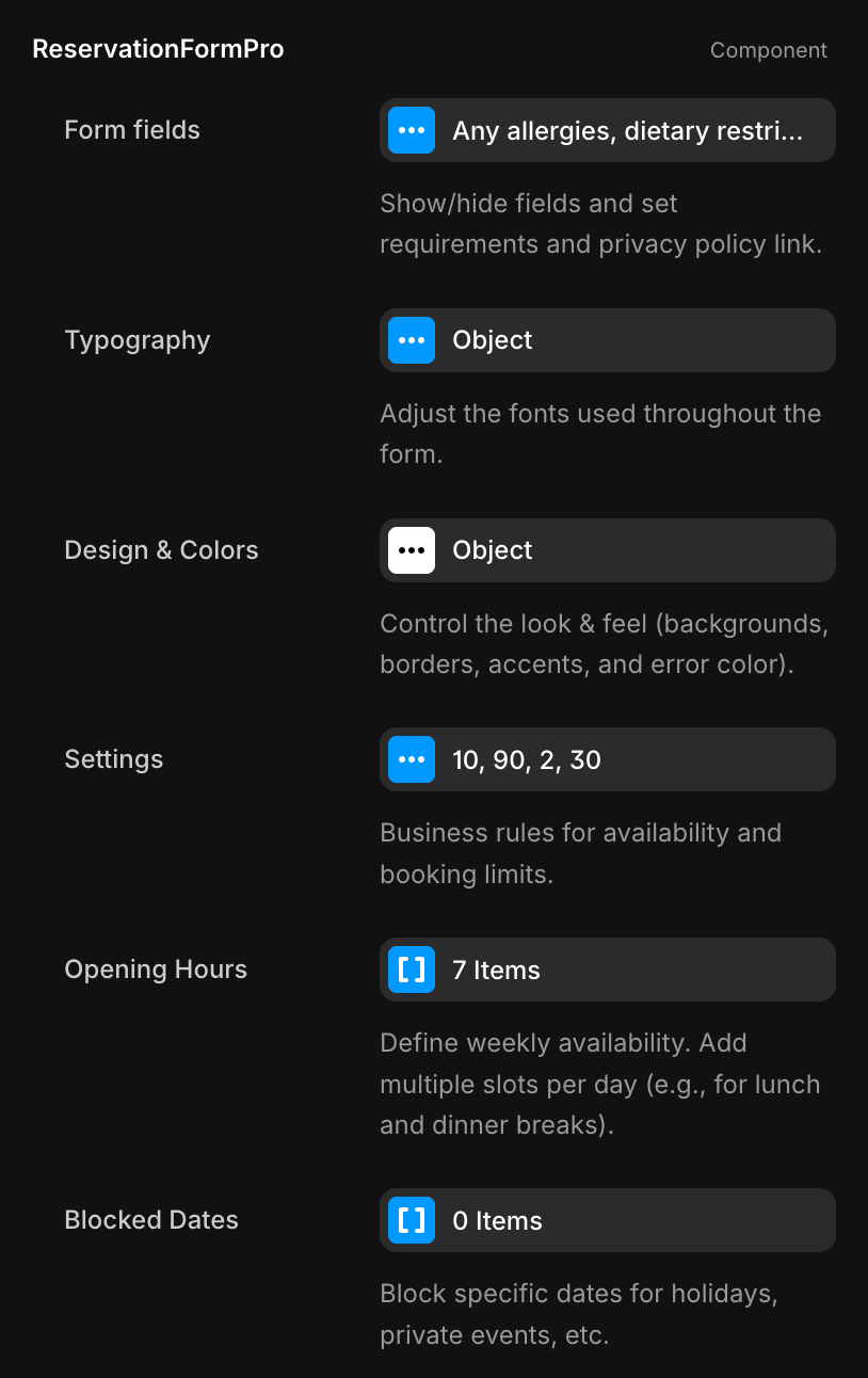 Reservation Form Pro is a multi-step reservation flow for Framer that connects directly to a native Framer Form. It is designed for restaurants, bars and similar venues that need a clean, mobile-friendly booking experience.
