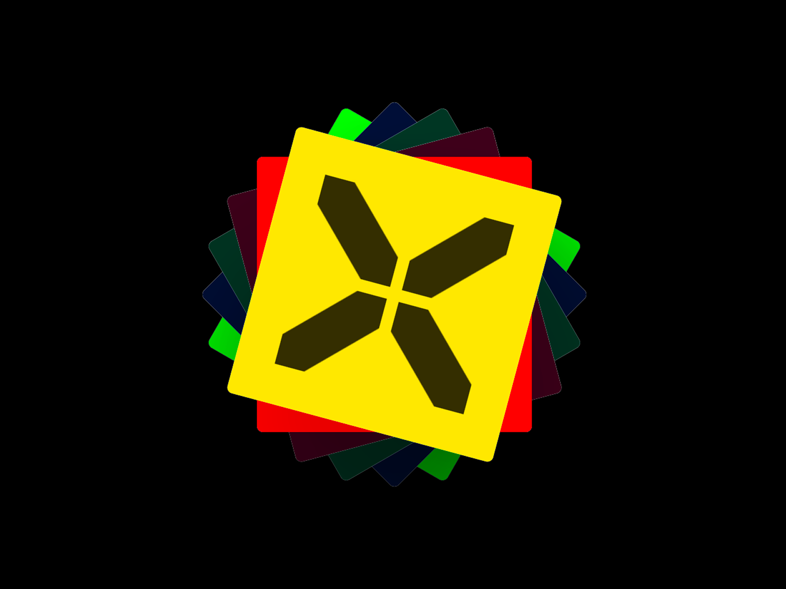 Images appear progressively, each added on top with a fixed rotational offset, forming a rotating fan-style stack. The motion loops infinitely without resets, snapping, or easing, creating a seamless 360° rotation over time.