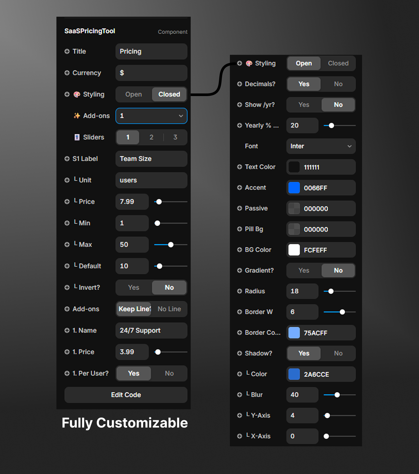 Most Framer calculators are too simple. They only let you change one thing. The SaaS Pricing Tool handles real-world complexity. It is 100% customizable—you can rename "Users" to "Days," "Items," or anything else.