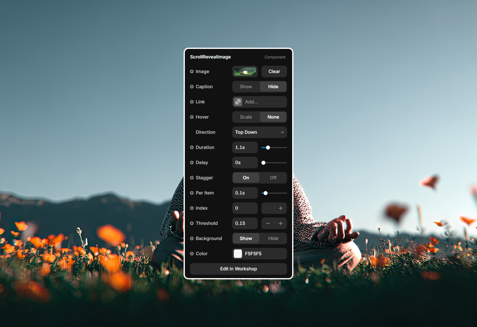 Interactions: Turn on hover scaling for extra depth and use the stagger feature to create a beautiful sequence when multiple images appear at once.
