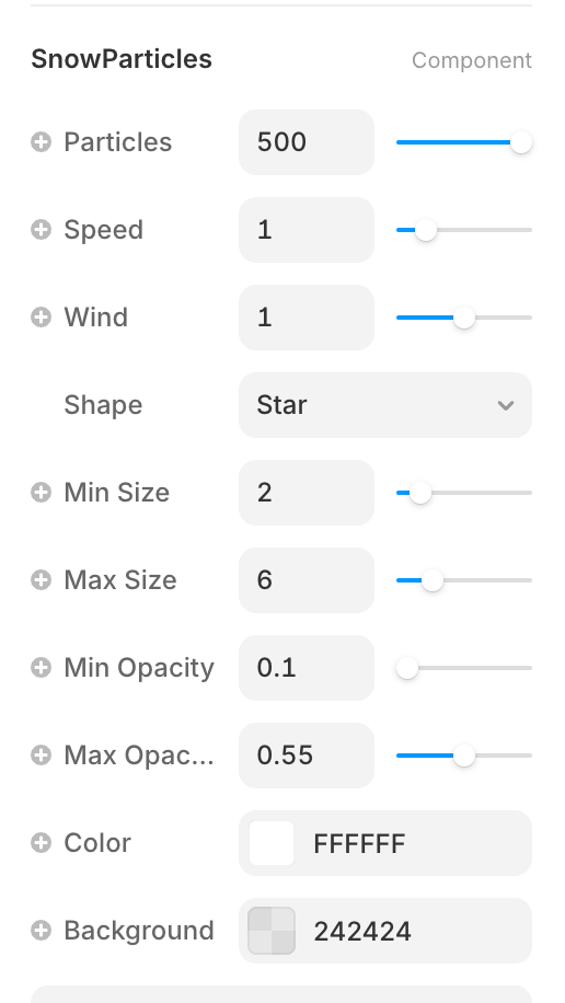 Snowfall Background is fully customizable through simple visual controls, making it easy for both designers and non-technical users to fine-tune the effect to match their design language.