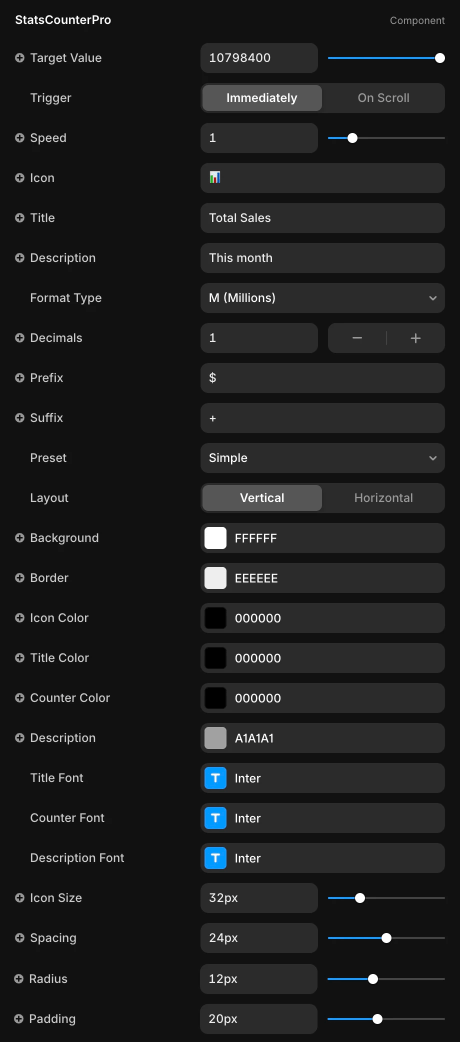 Highlight achievements and key performance numbers with movement that inspires trust and excitement. Animated Stats Counter Pro adds dynamic motion to metrics, helping businesses showcase social proof, success stories, performance stats, and milestones more effectively. Designed for landing pages and portfolios that need to convert visitors by visually reinforcing authority.