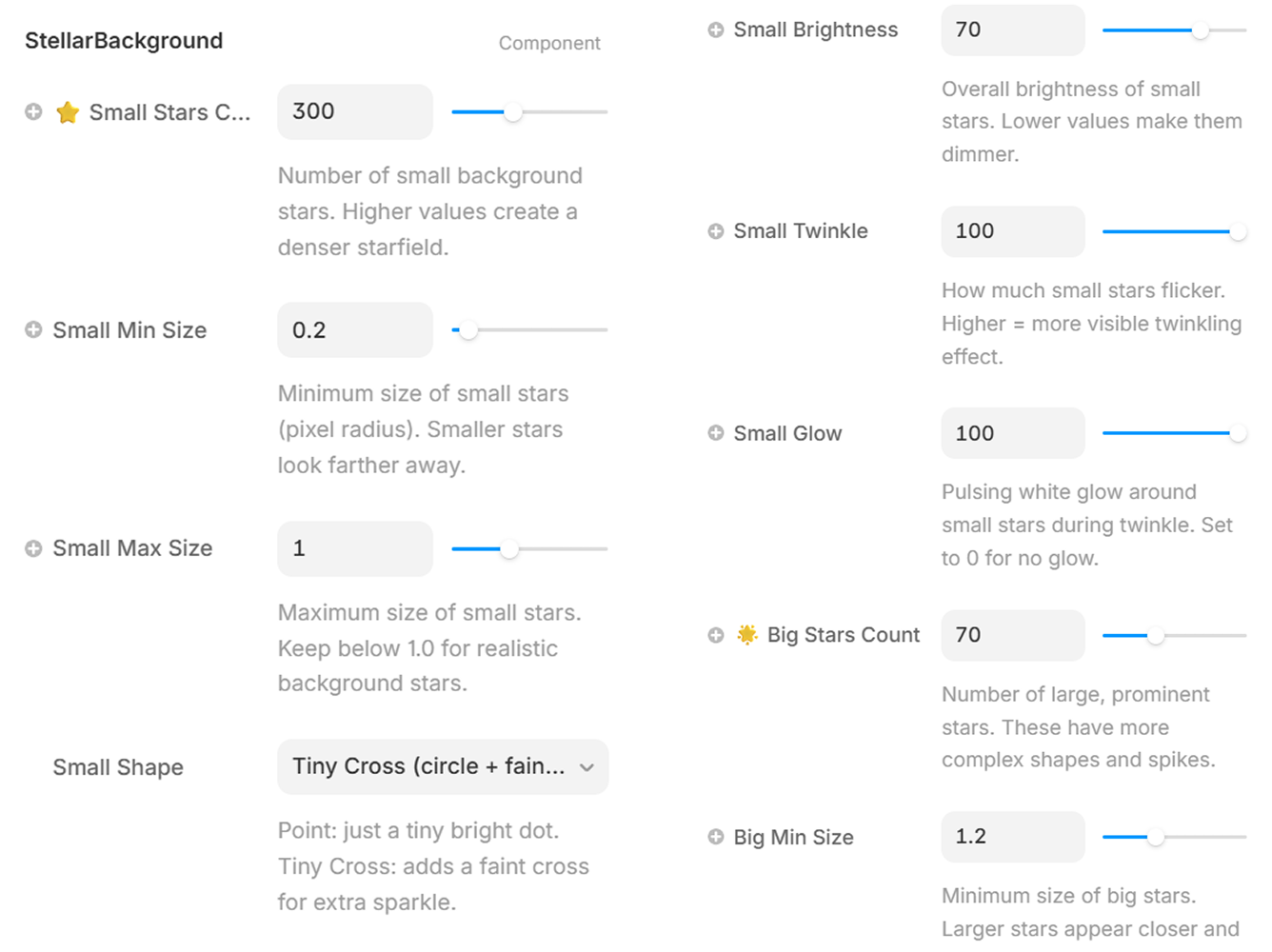 Stellar Background is a high-performance, deeply customizable starfield component designed for creators who want their website to feel alive, premium and unforgettable.