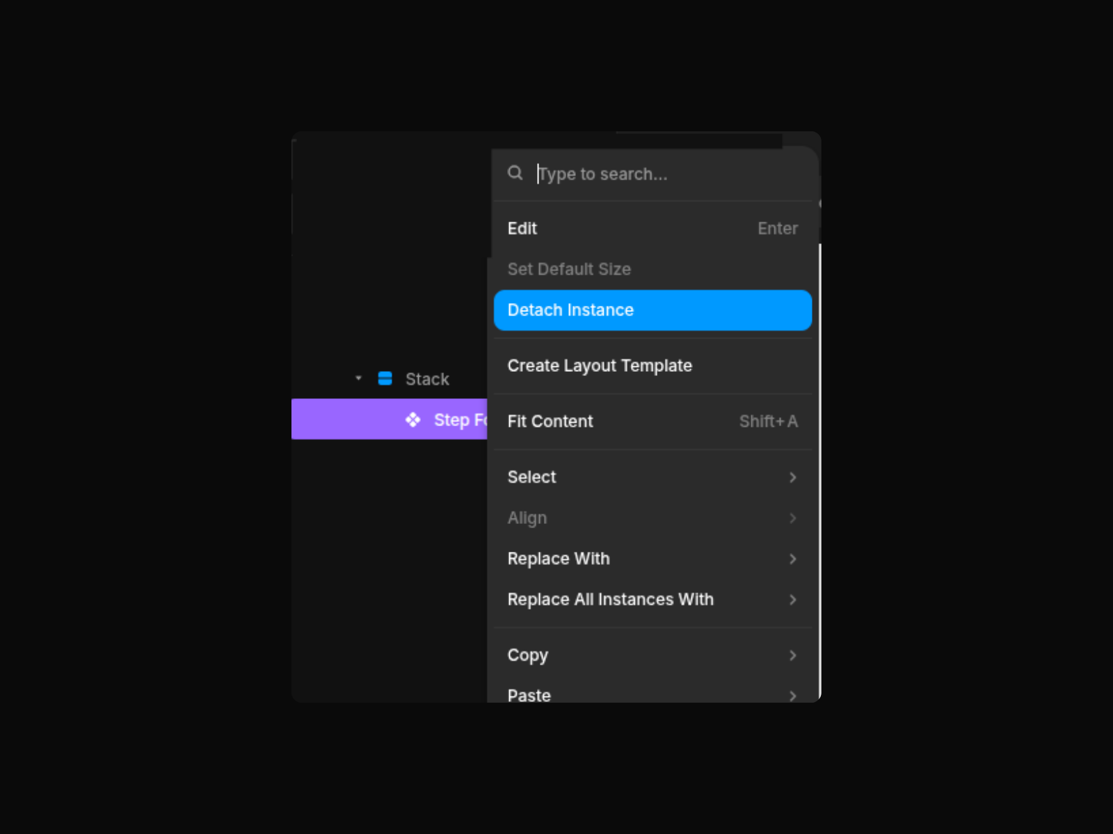 Click the Step Form and choose Edit on the property panel