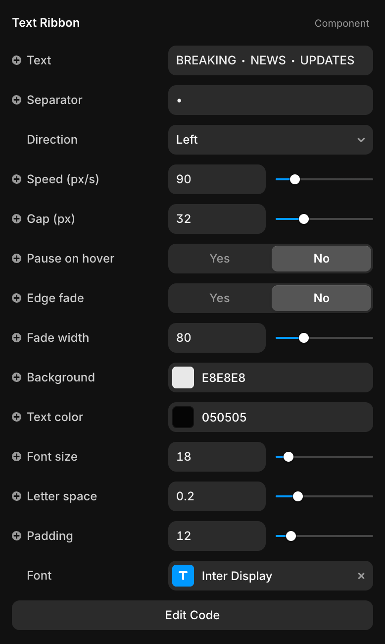 Controls for gap, letter spacing, padding, background & text color