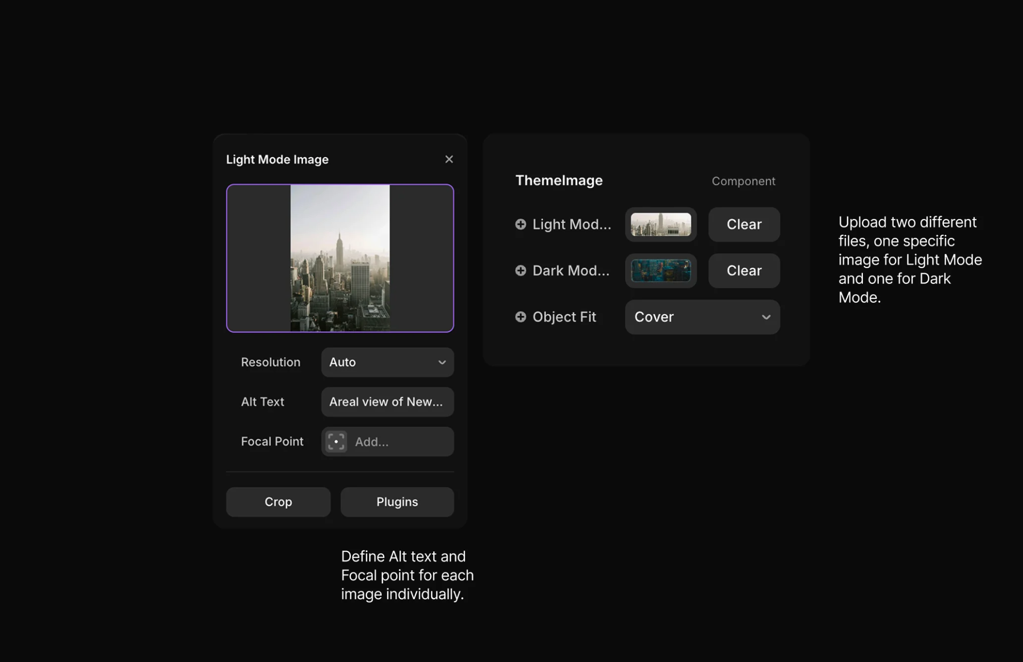 This component automatically switches between two images based on the user’s system theme (light or dark mode). Just upload both versions, and it seamlessly displays the right one. Ideal for logos, illustrations, or any visuals that adapt to dark and light UI themes.