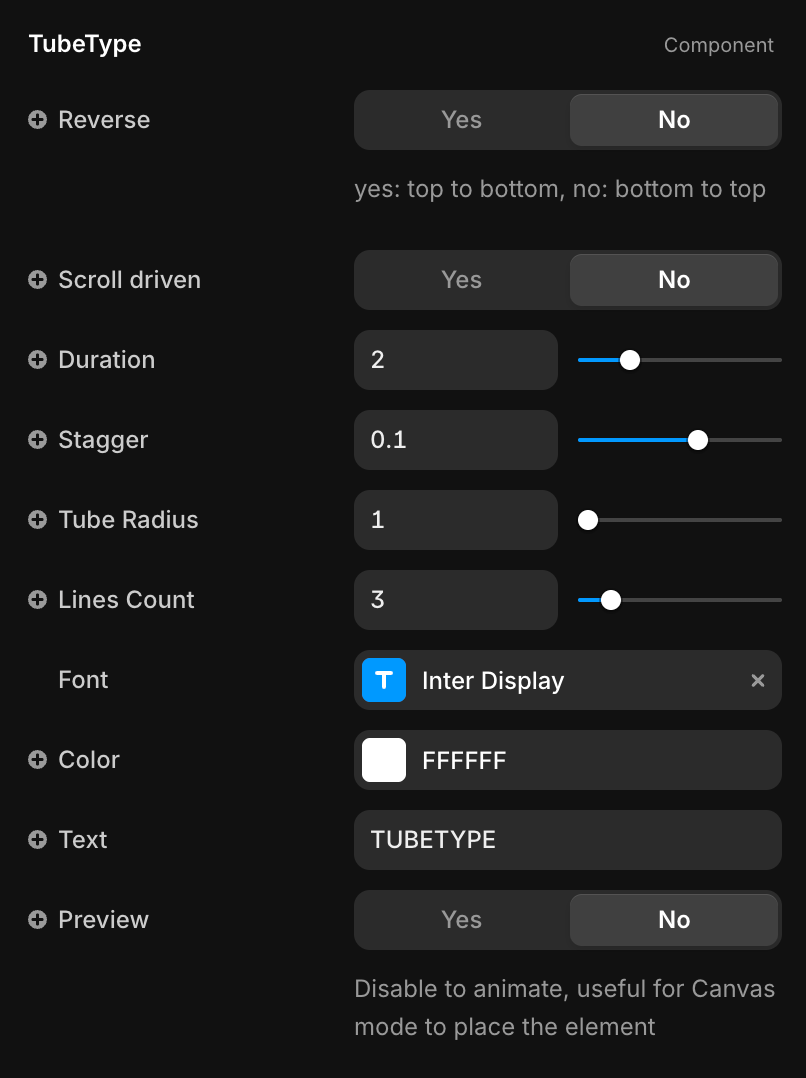 Fine-Tuned Animation Controls – Adjust duration, stagger, tube radius, line count, and direction right from the props.