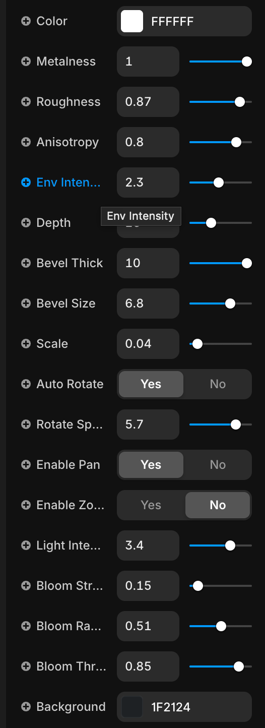 Make it pop with built-in Bloom effects. Control the intensity, radius, and threshold to create that futuristic, glowing "cyberpunk" or "luxury" look that grabs attention immediately.