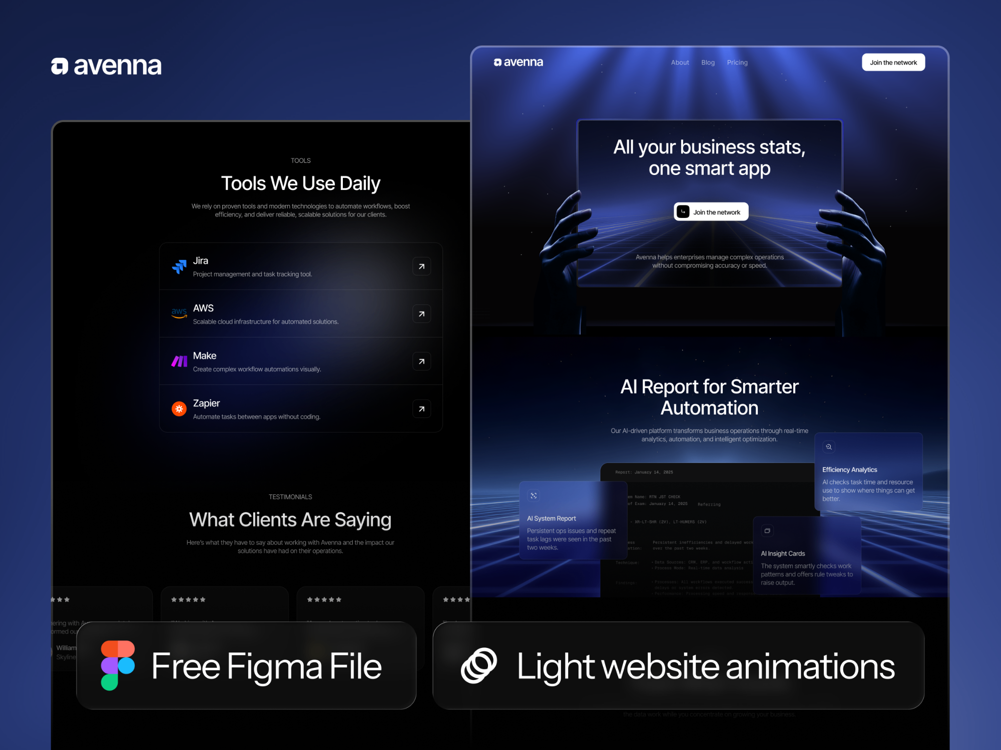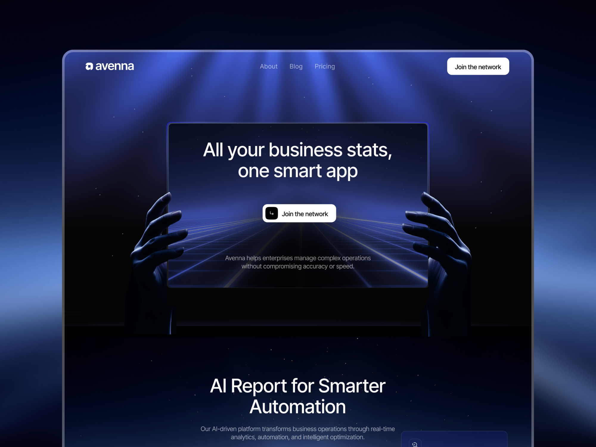 Avenna is a high-end Framer template created for AI applications, SaaS products, and tech startups that want a bold and cinematic online presence. Its signature look is built around a deep black-and-blue color palette, soft atmospheric glow effects, and smooth interactive motion that makes every element feel intentional and alive.