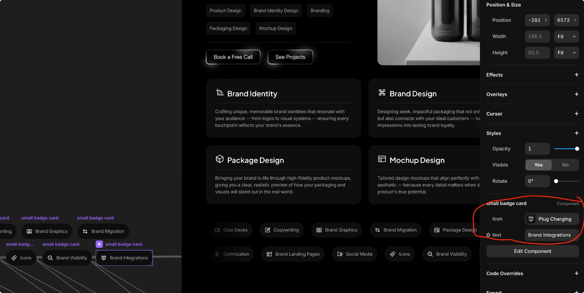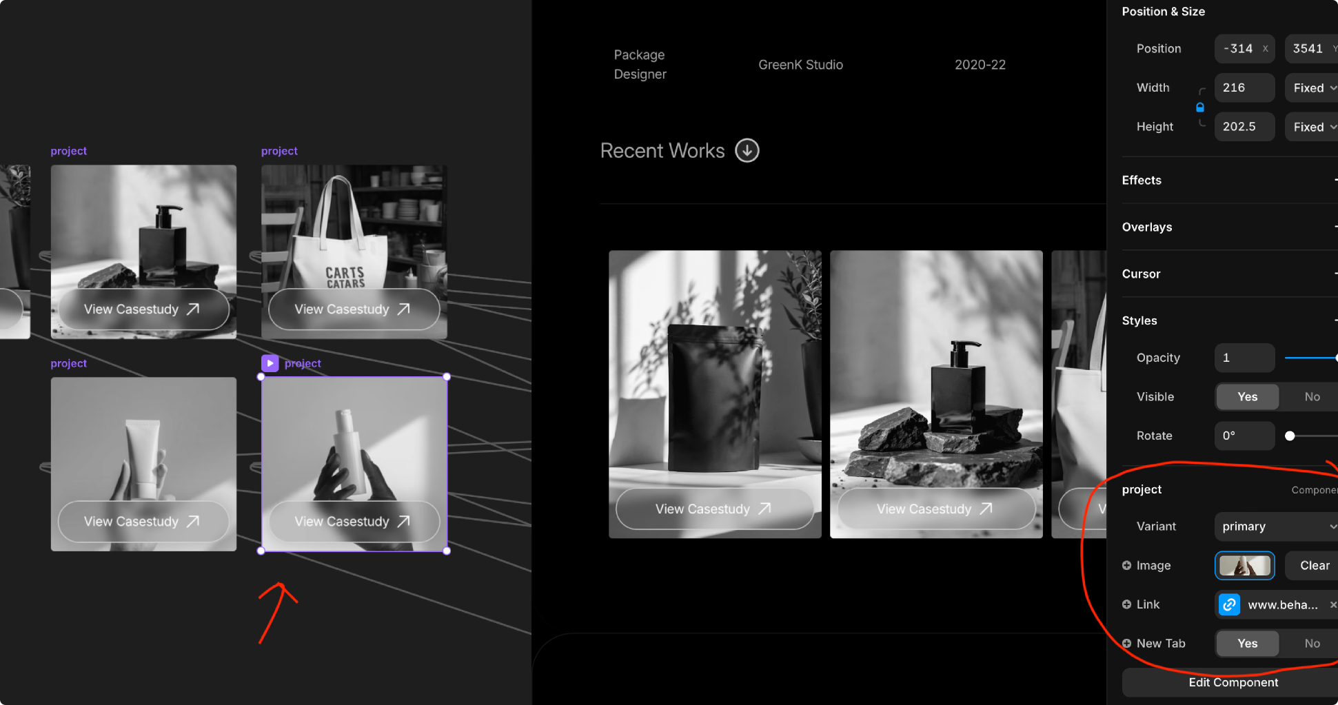 This template comprises multiple components. When you select a component, you’ll see a pink outline around it. Most components can be easily customized using the properties on the right-side panel, as shown in the example image above.