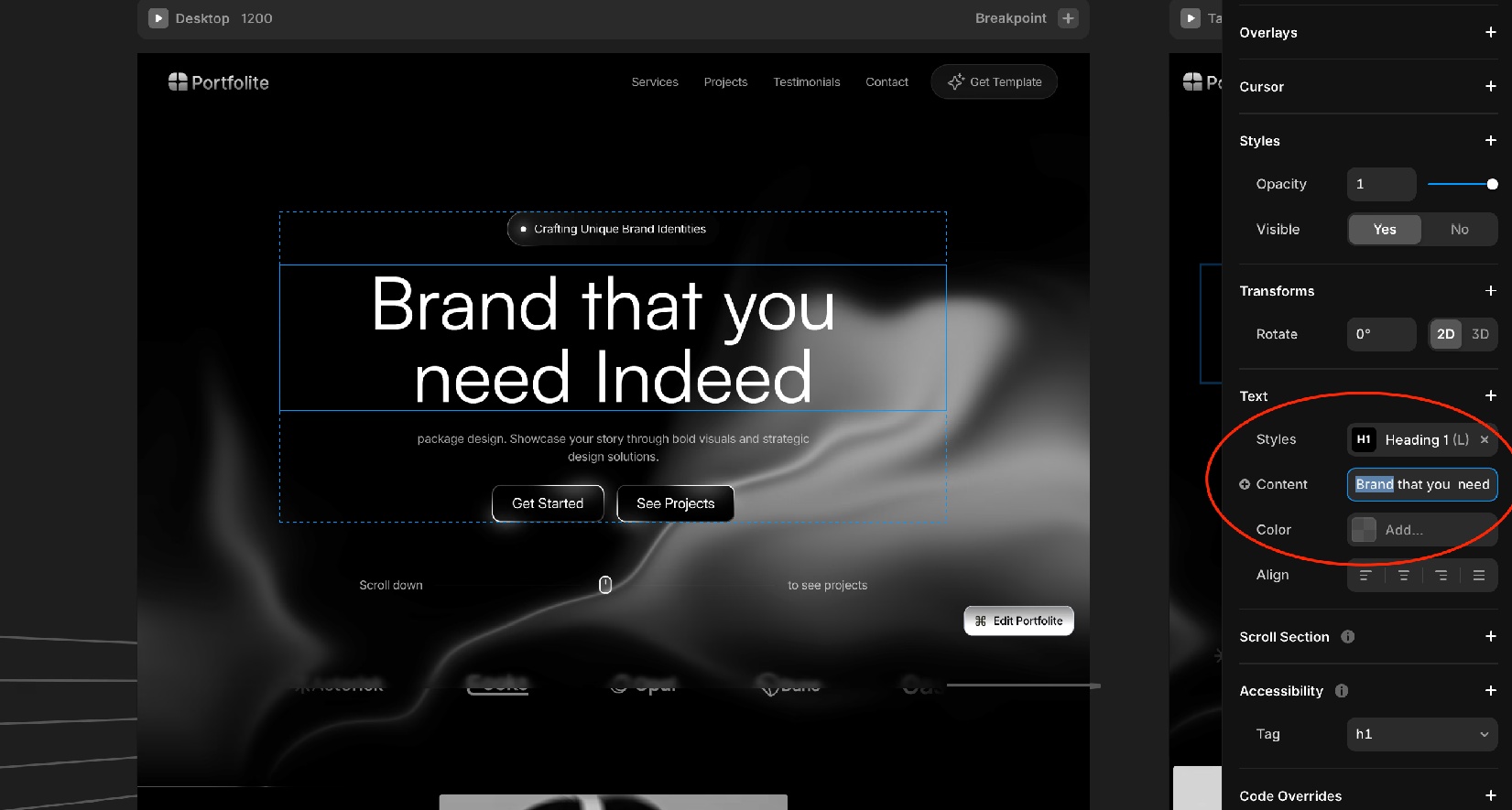 Layout Templates manage site-wide elements like navigation and footers in one place. This template supports Layout Templates, which means you can easily edit global components such as the navbar or footer. To access the Layout Template, select the desktop screen and, in the right-side panel, click Edit. This will take you inside the Layout Template, where you can open the navbar or footer component and customize them as you wish.