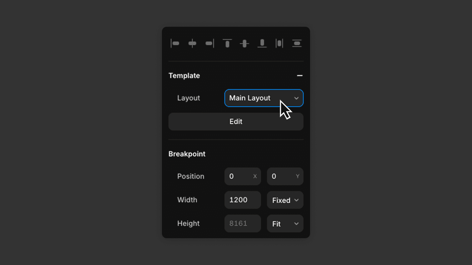To use a layout template, open a page and assign the template to it. You can do this by selecting the page element and finding Layout Templates at the top of the right panel.